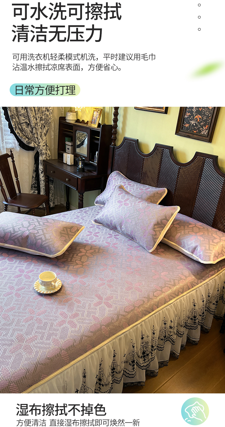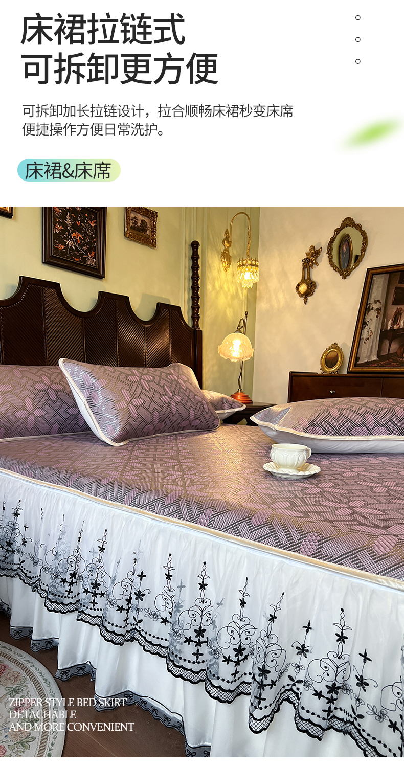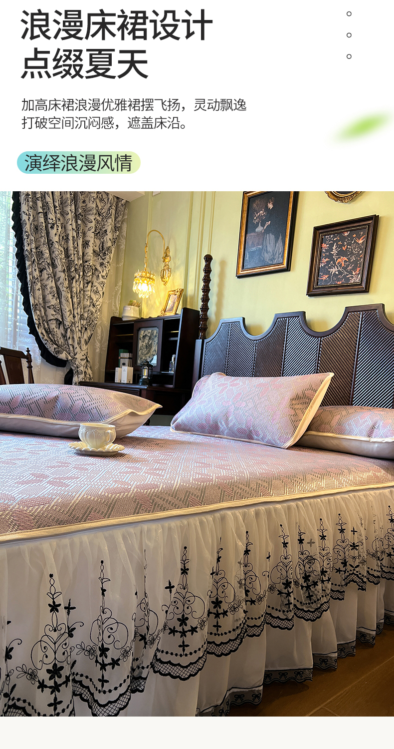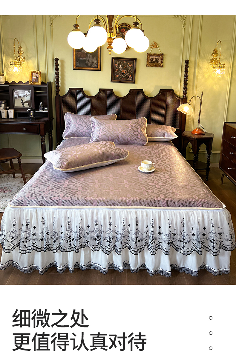 商品名称:网红馆(ck家纺) 2025新款可脱卸床裙款冰藤席-盛夏繁星 莲红