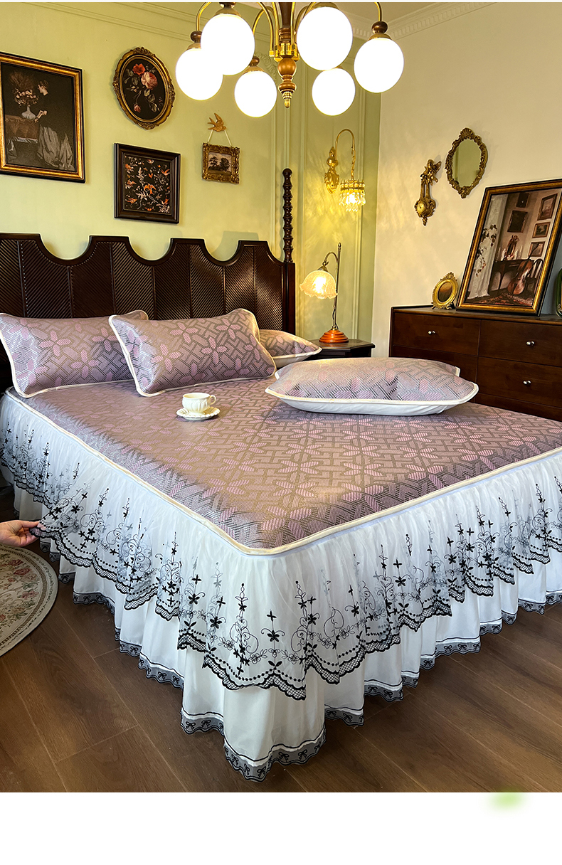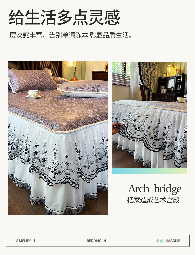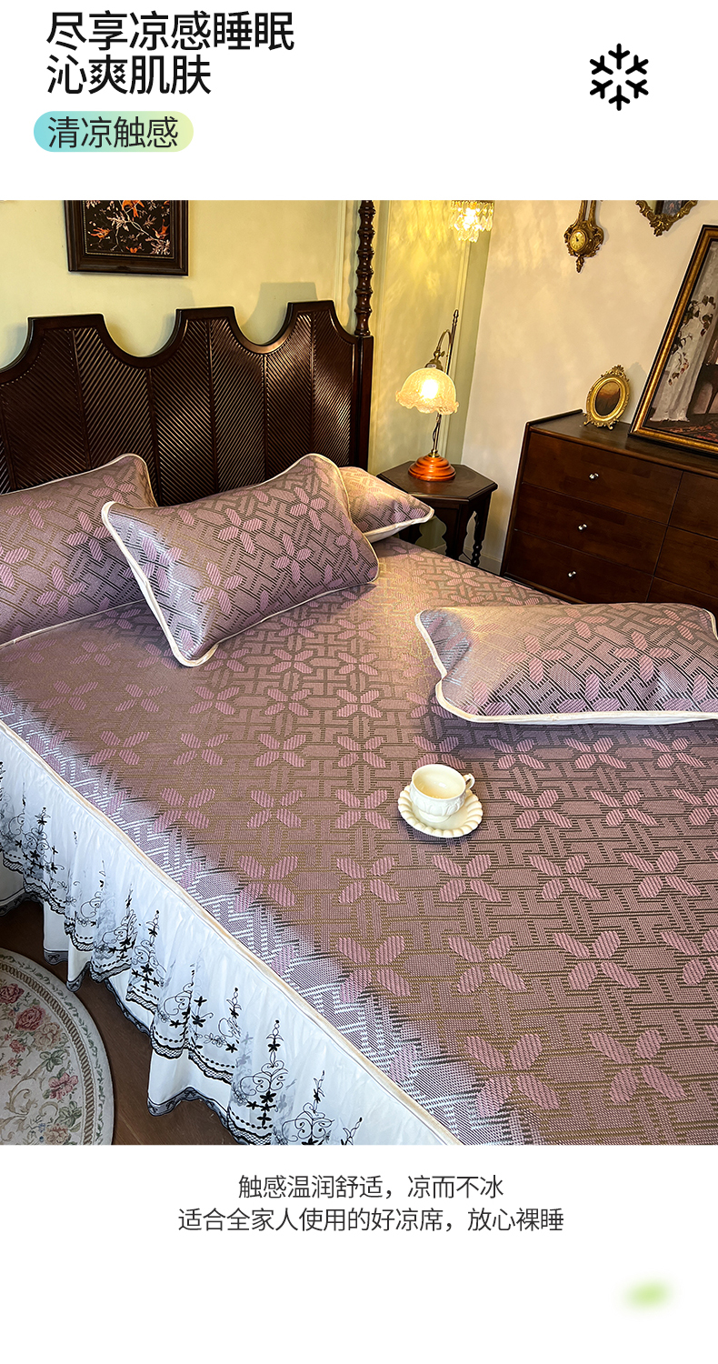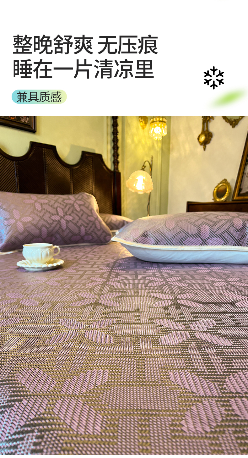 商品名称:网红馆(ck家纺) 2025新款可脱卸床裙款冰藤席-盛夏繁星 莲红