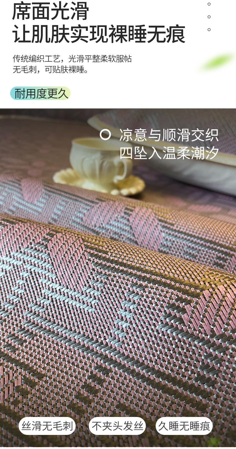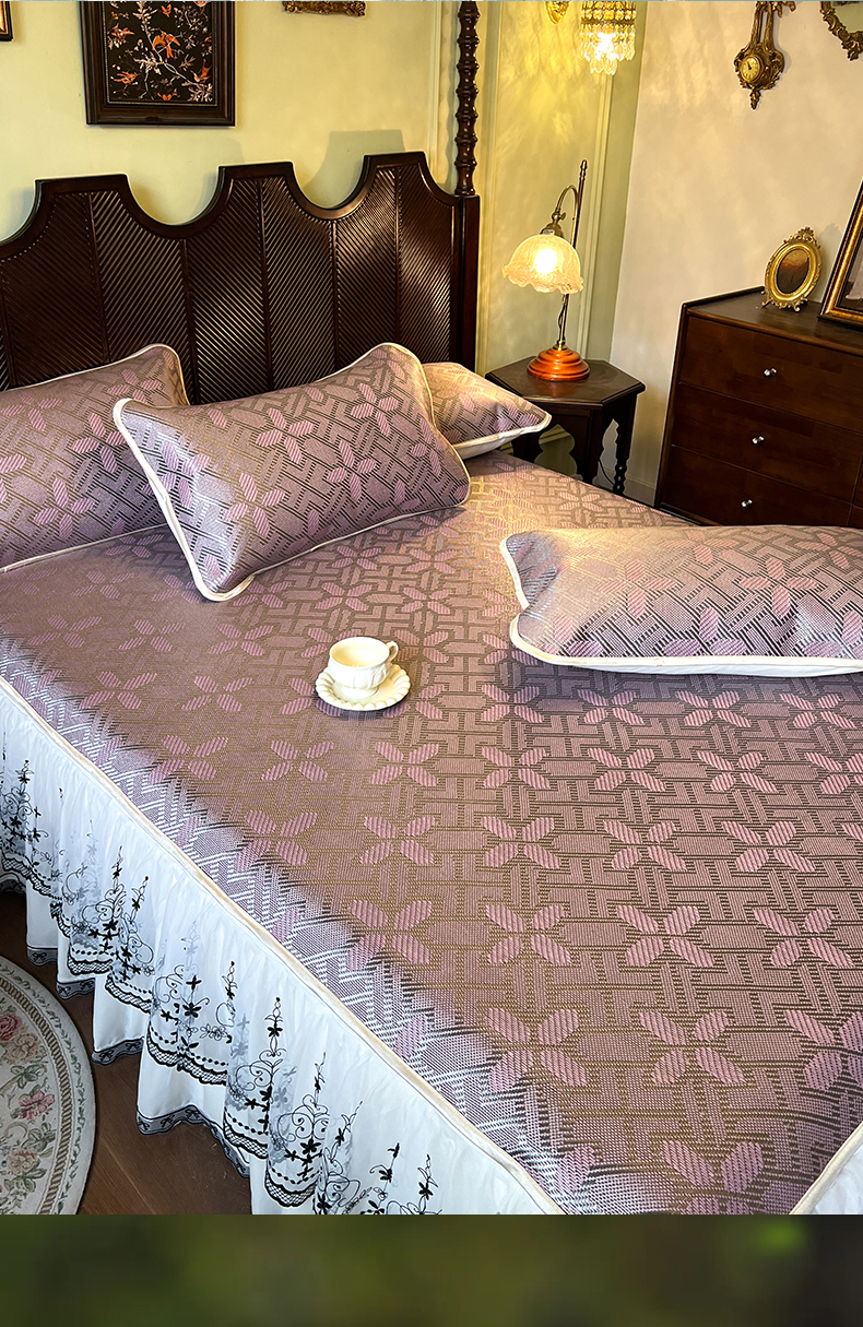 网红馆(ck家纺) 2025新款可脱卸床裙款冰藤席-盛夏繁星 莲红