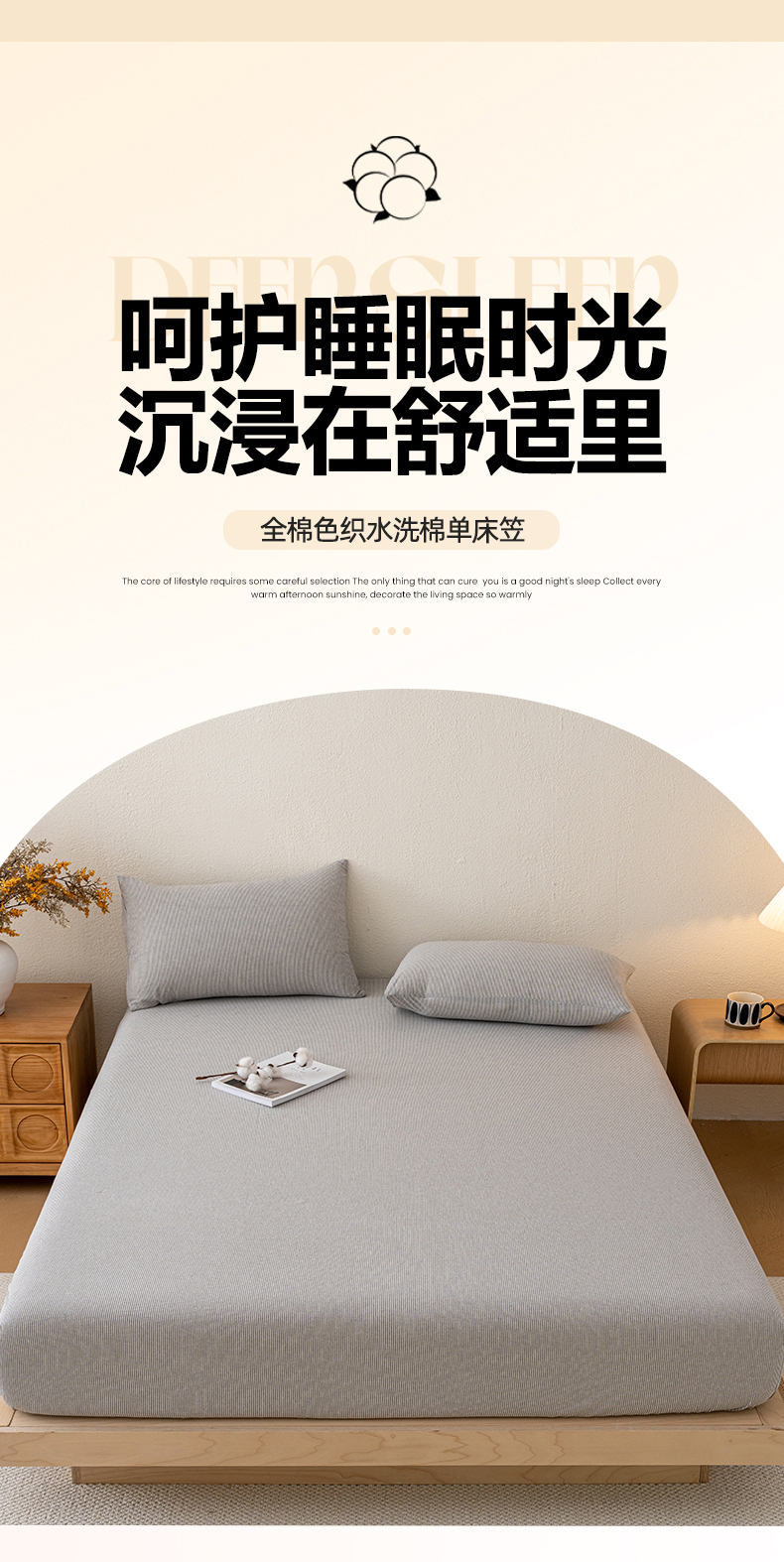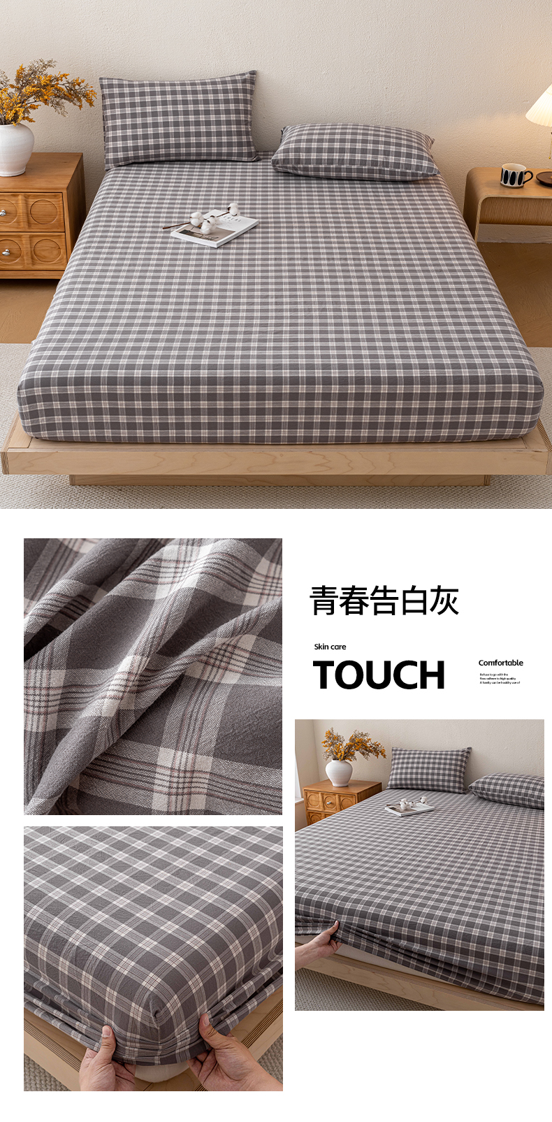 商品名称:吉象家纺 2025新款全棉色织水洗棉床笠三件套 秘境灰条