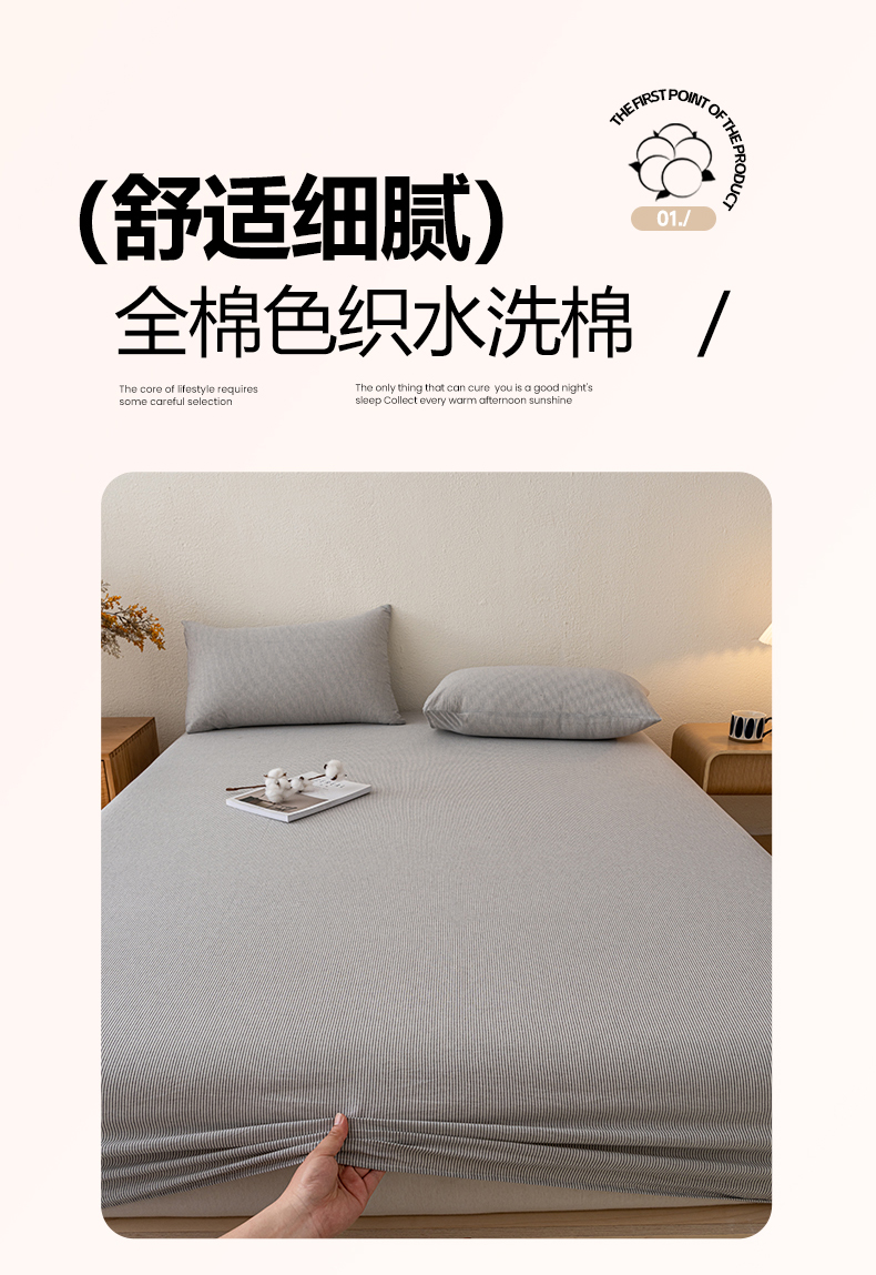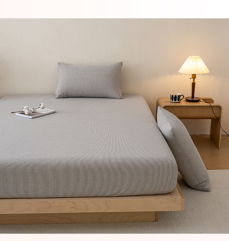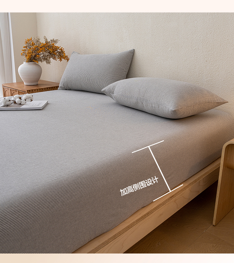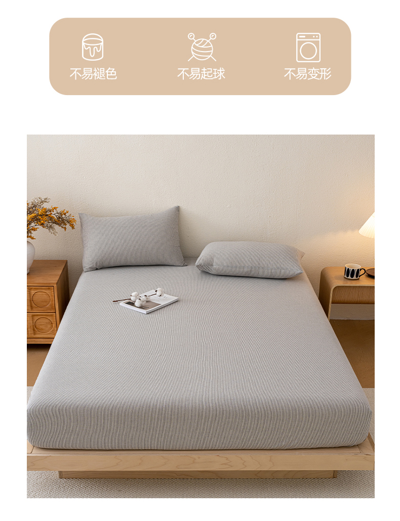 吉象家纺 2025新款全棉色织水洗棉床笠三件套 秘境灰条