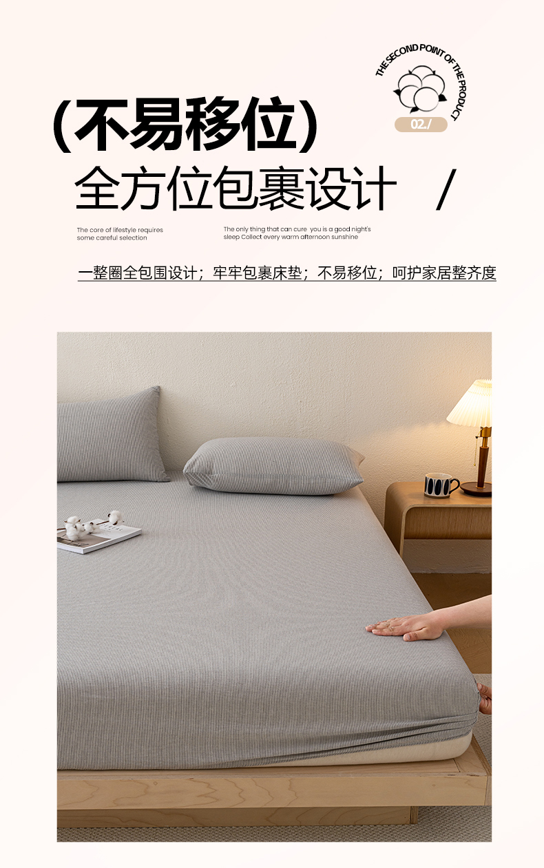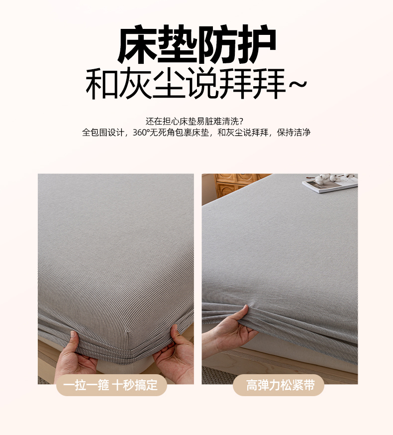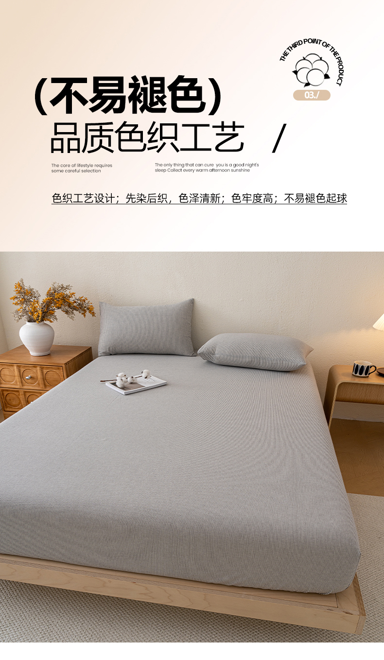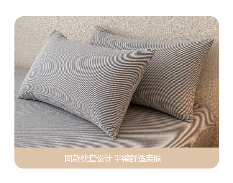 吉象家纺 2025新款全棉色织水洗棉床笠三件套 秘境灰条