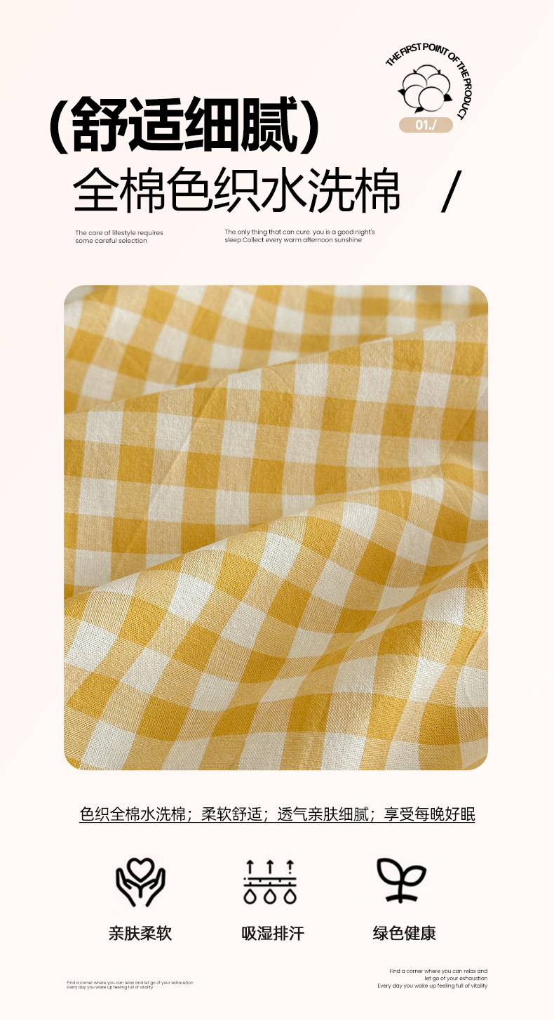 商品名称:(总)吉象家纺 2025新款全棉色织水洗棉床单三件套