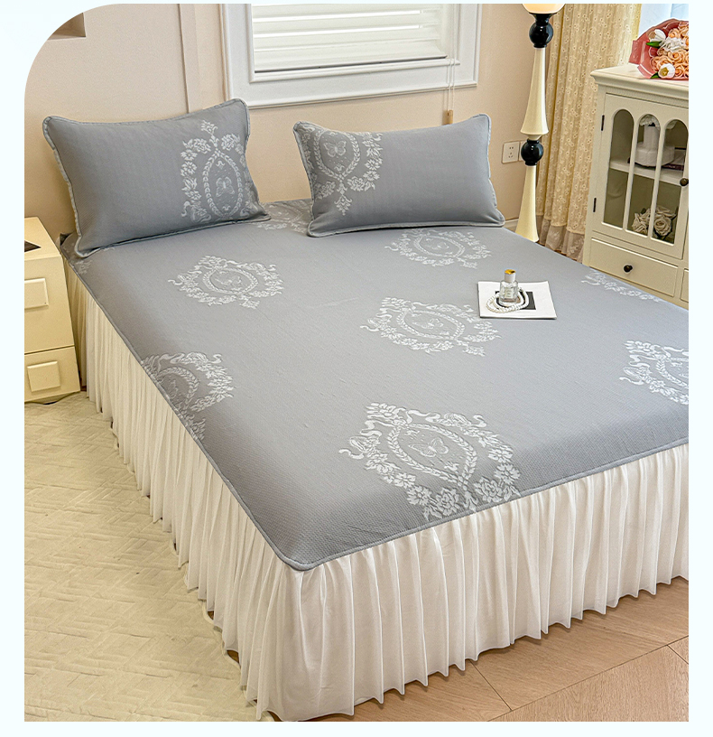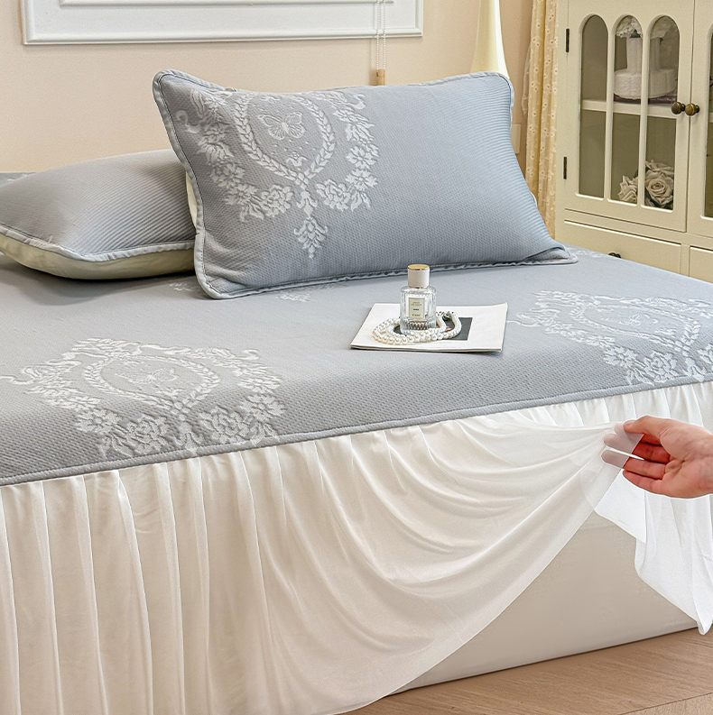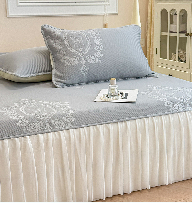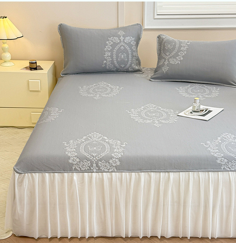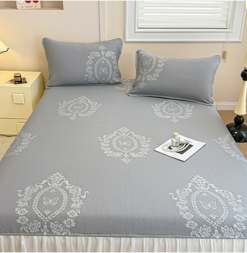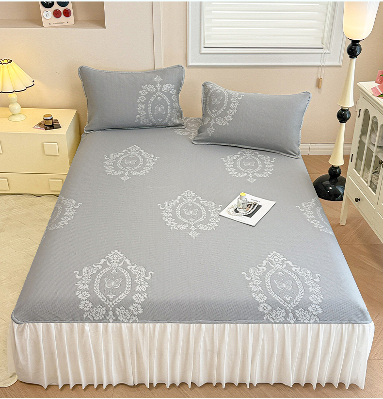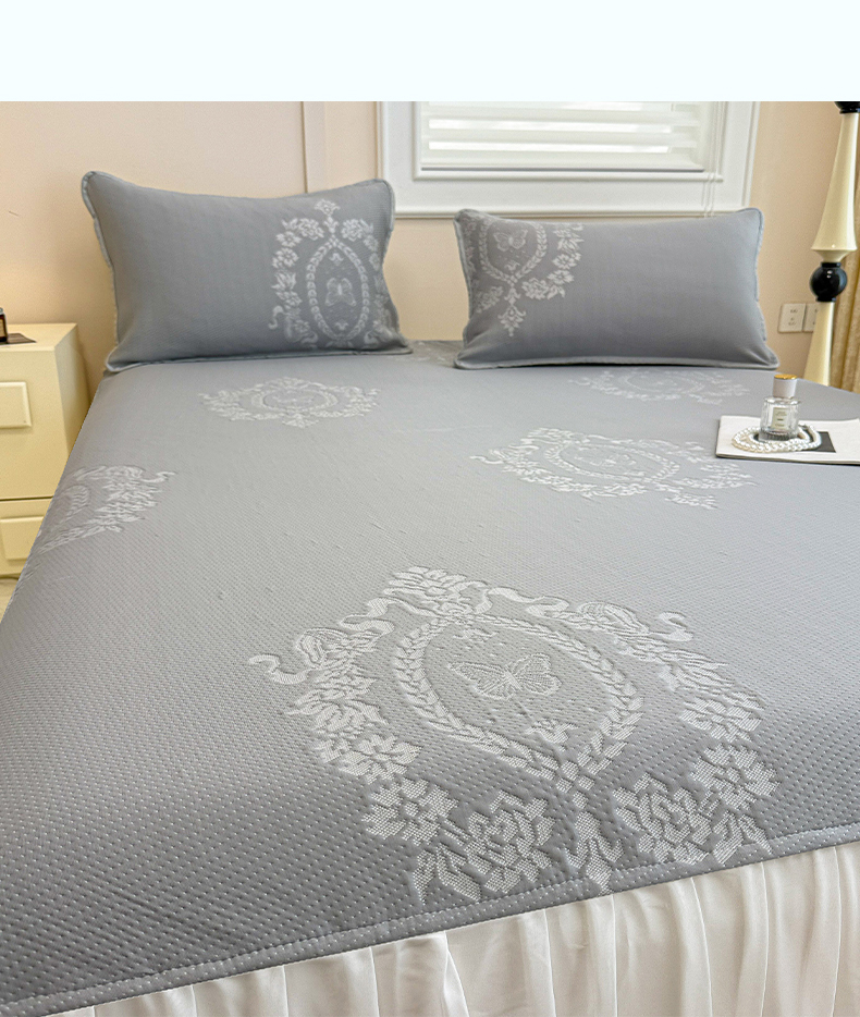 布卢姆床垫 2025新款A类PE乙纶冰豆豆凉席床裙款 蝴蝶花镜 灰