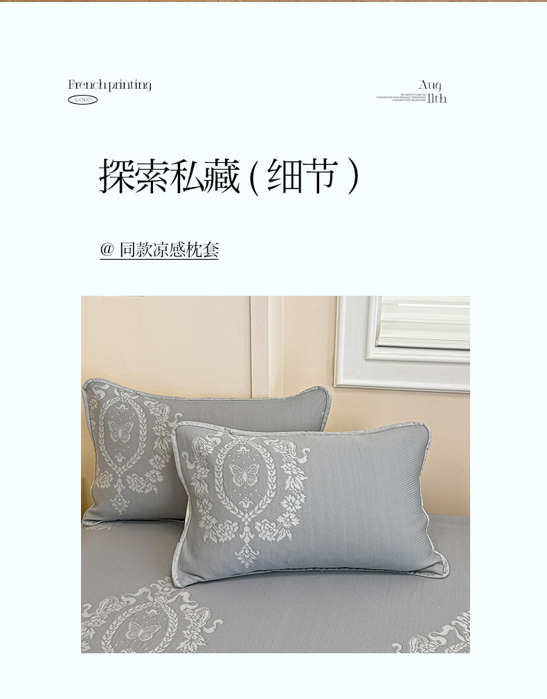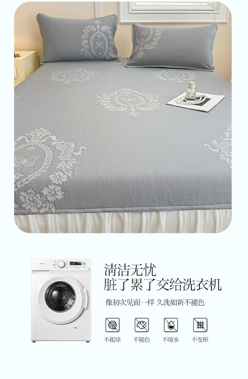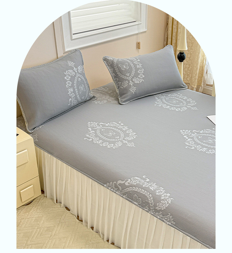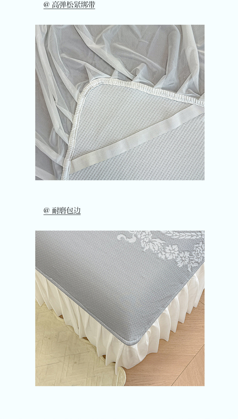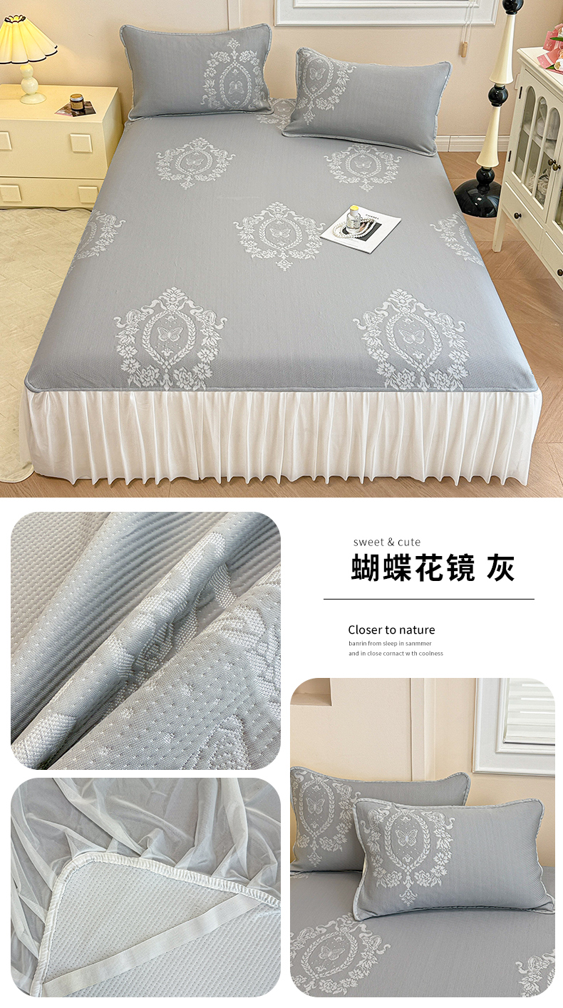 商品名称:布卢姆床垫 2025新款A类PE乙纶冰豆豆凉席床裙款 蝴蝶花镜 灰