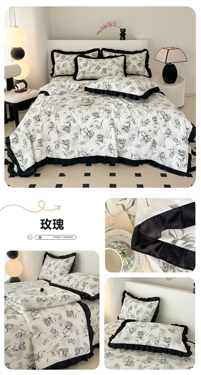 (总)同田家纺 2024新款泡泡棉印花蕾丝工艺四件套,萱花,樱桃,郁金香,竹子熊猫,朵朵花开,黑樱桃,花花小兔,花园,可爱猫,浪漫花季,绿林,莫奈花园,硕果累累,苏菲庄园