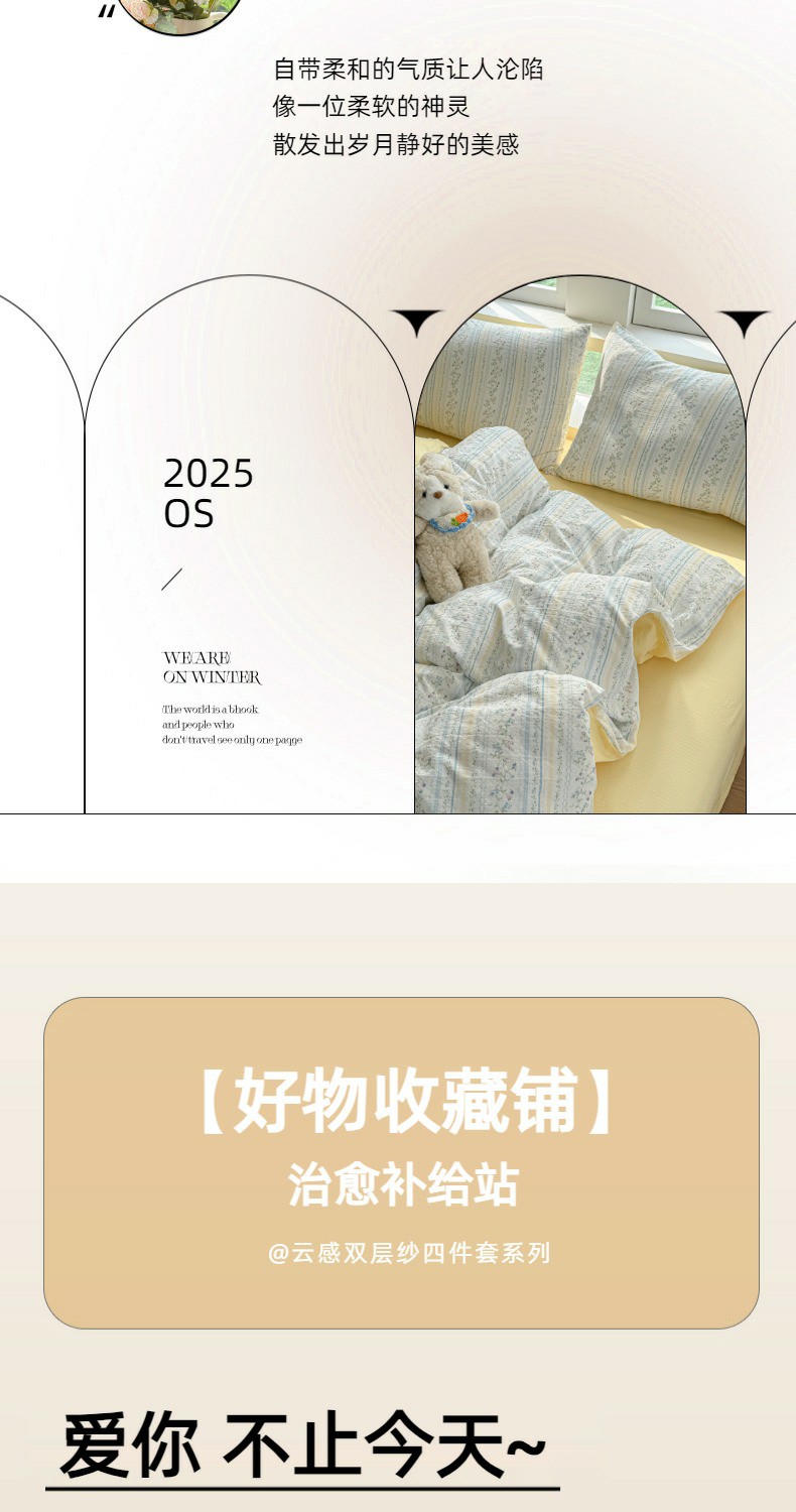 当前位置: 91家纺网 > 商品网购 > 床品套件 > 四件套 > 双层纱四件套 > 温眠家纺 2025新款云感针织双层纱四件套 洛克庄园