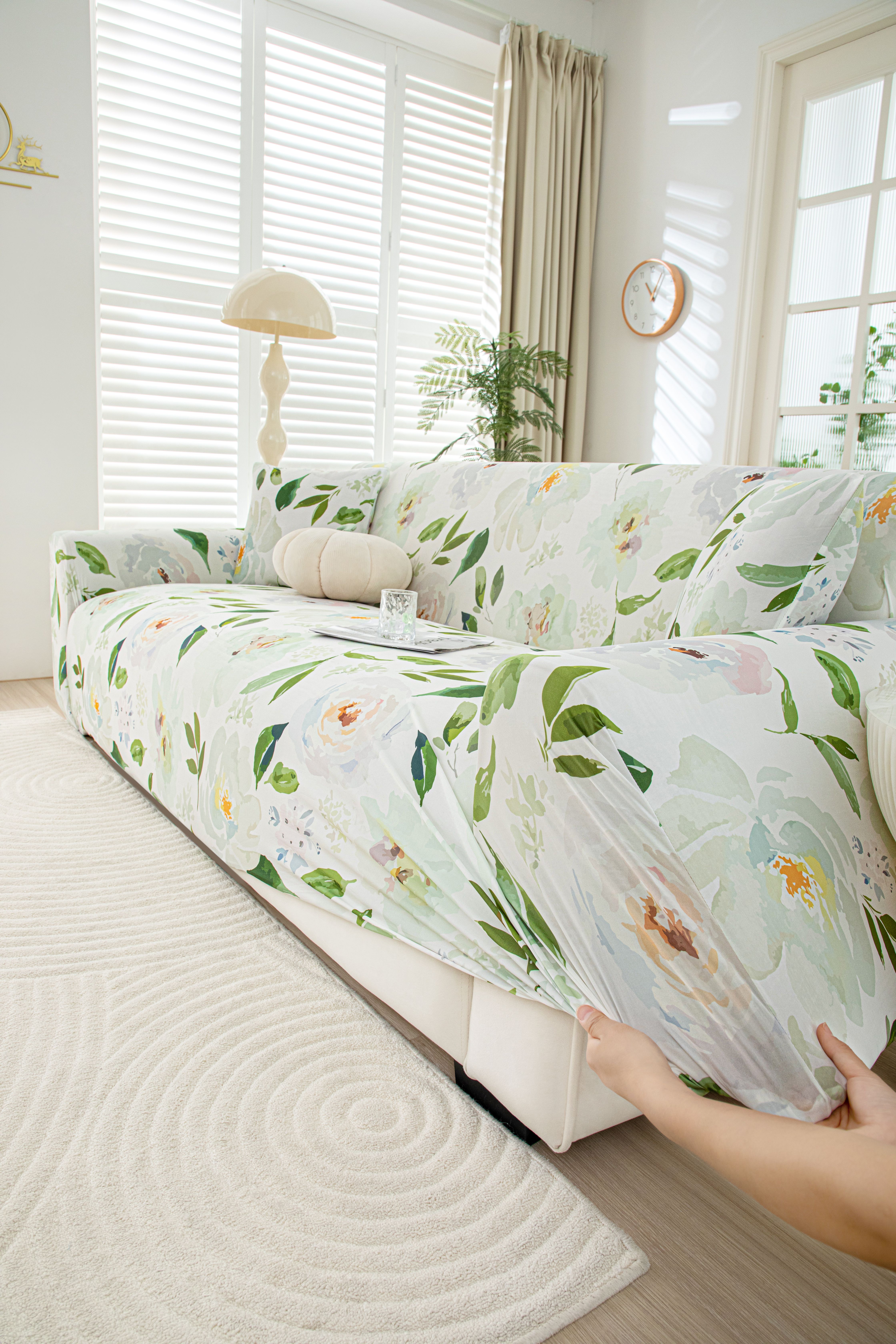 沐沐家纺 2026春夏新款冰丝印花沙发套 清袅
