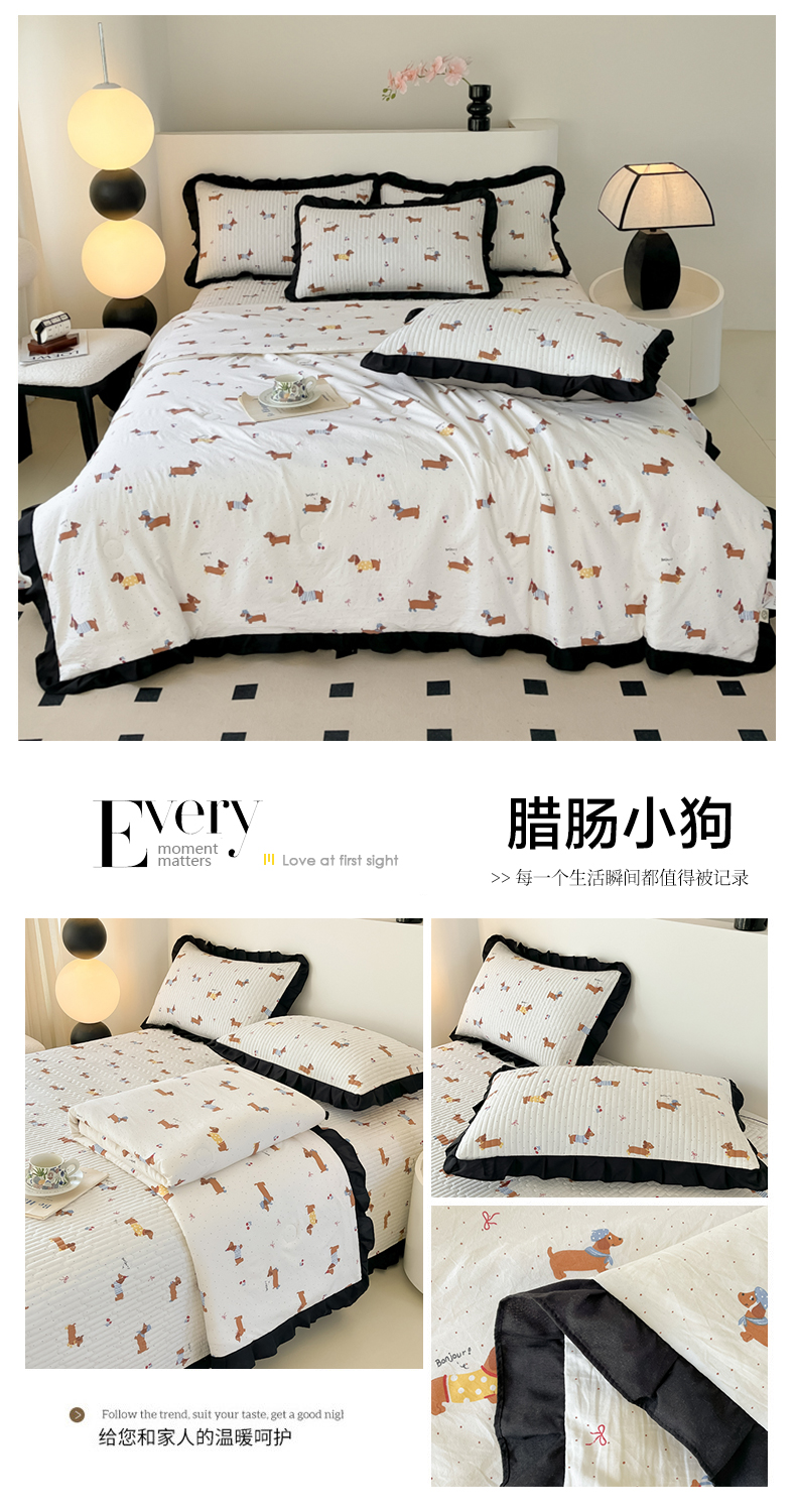 商品名称:同田家纺 2025新款A类水洗棉床盖夏被四件套 腊肠小狗