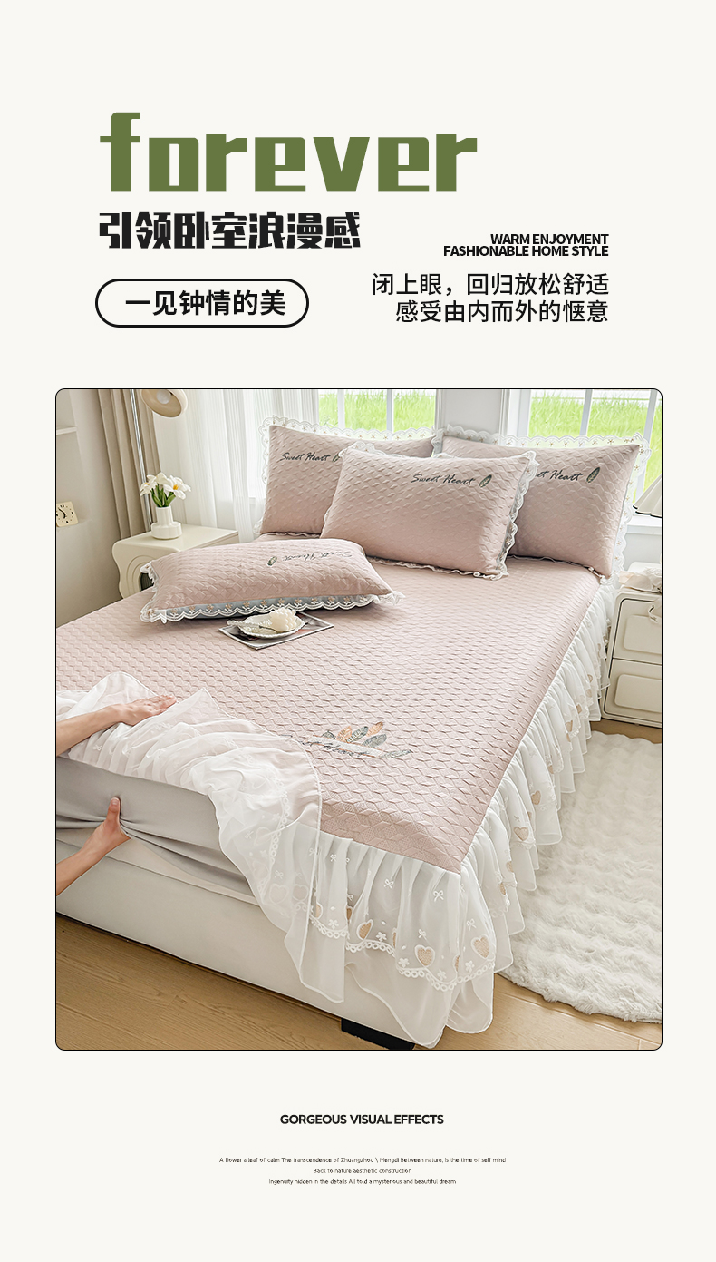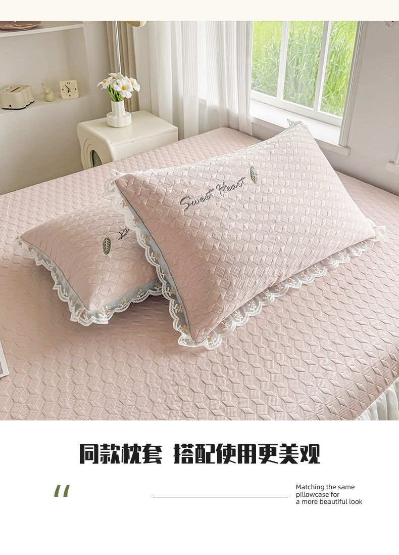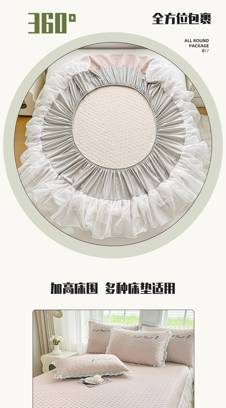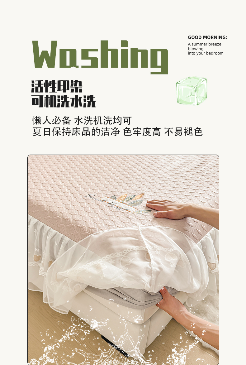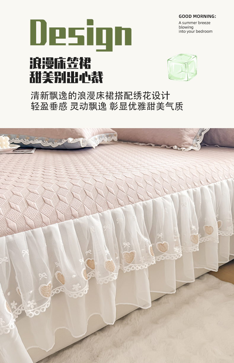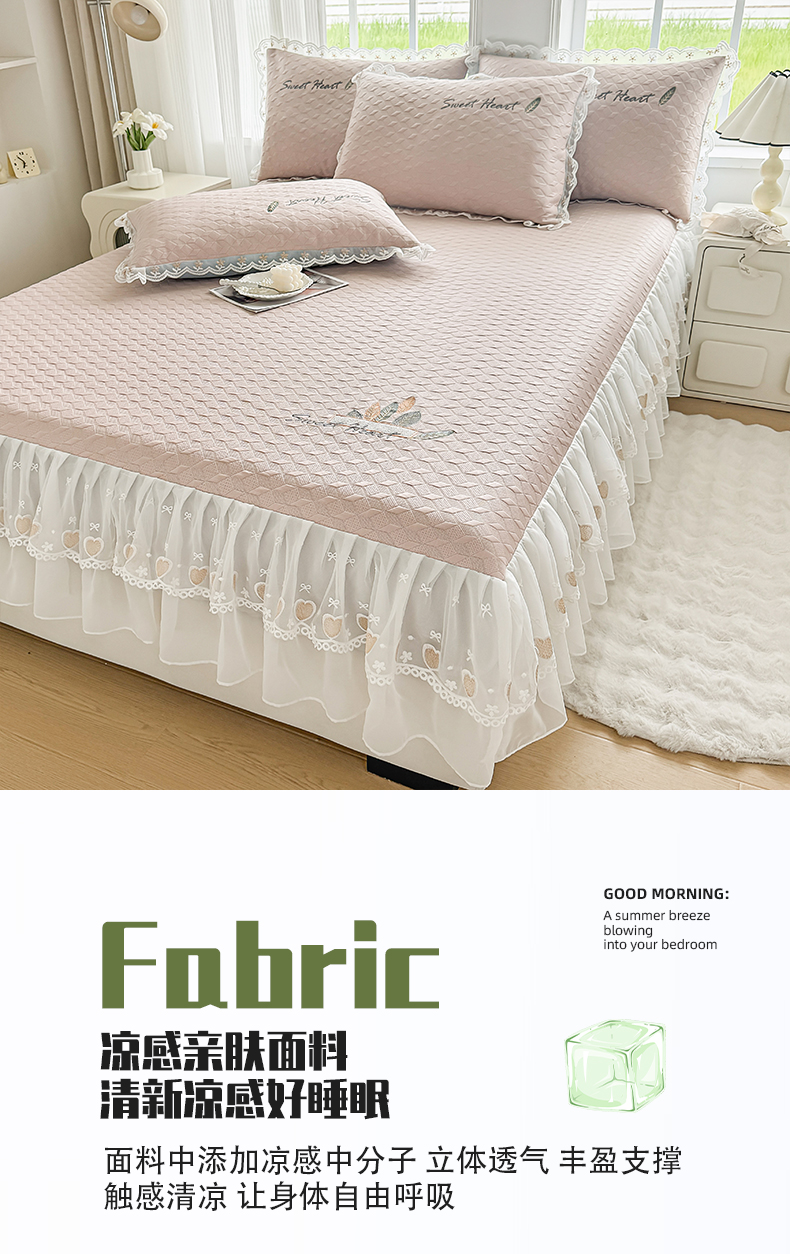 (总)2025新款500克冰豆豆凉豆豆床裙凉席三件套,冰川蓝,高级灰,公主粉,奶油咖,青草绿,天空蓝