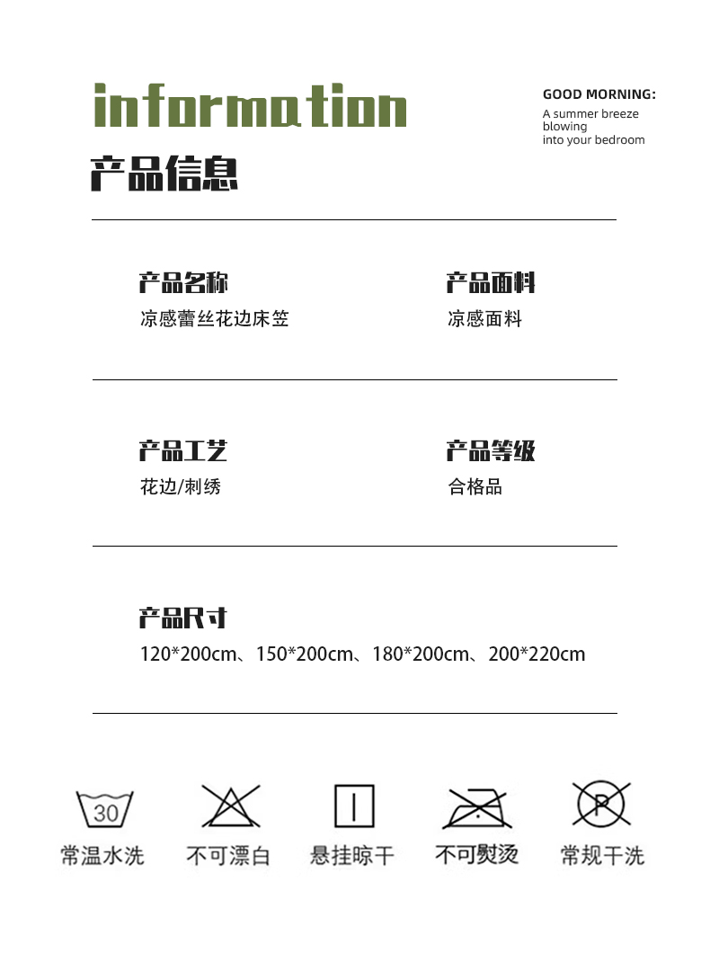 商品名称:(总)好漂靓家纺 2025新款真凉感冰丝PE中分子床裙床笠二合一凉席席子三件套-清叶
