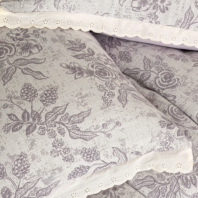 (总)梦享生活家居 2025新款高级轻奢色织双层纱大提花棉麻四件套,梦芙-浅灰,梦芙-深灰