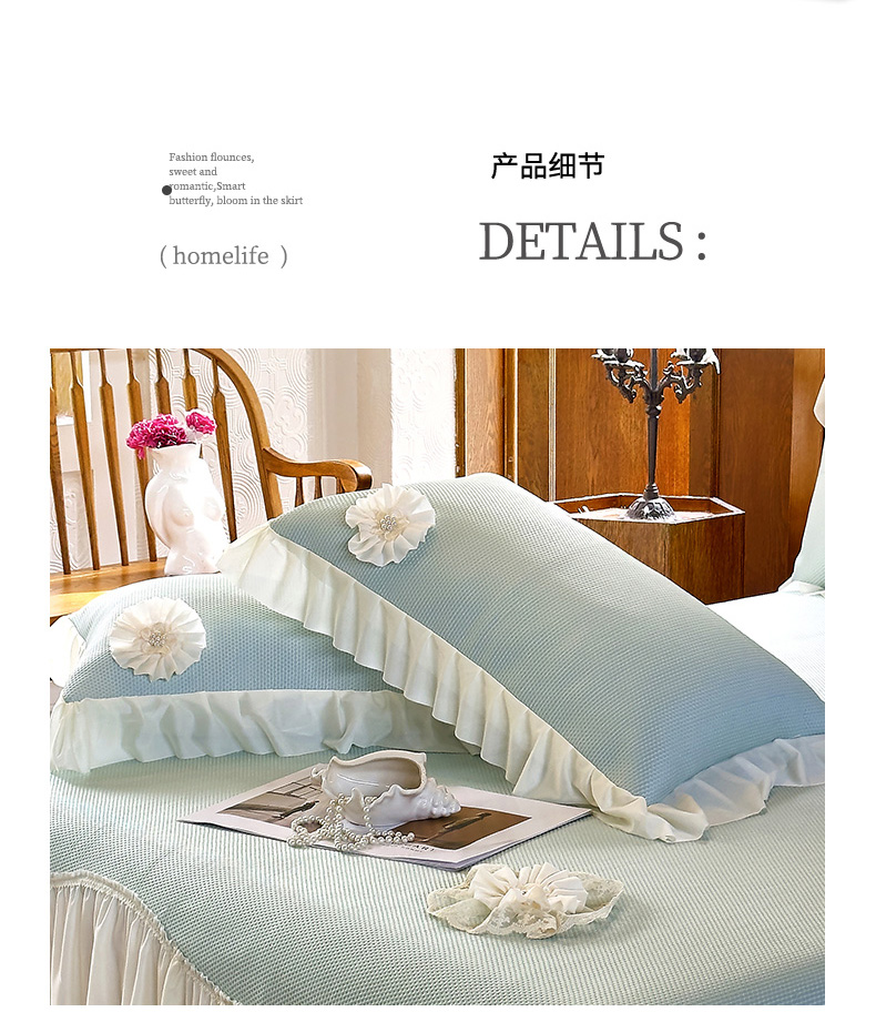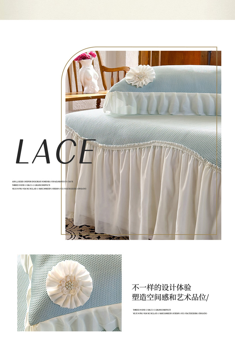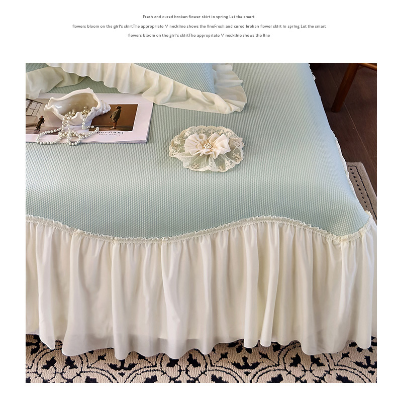(总)乐朵家居 2026春夏 23-2觅彩 锦棉 蕾丝床裙,豆沙色,灰色,蓝色,绿色,奶白色,玉色