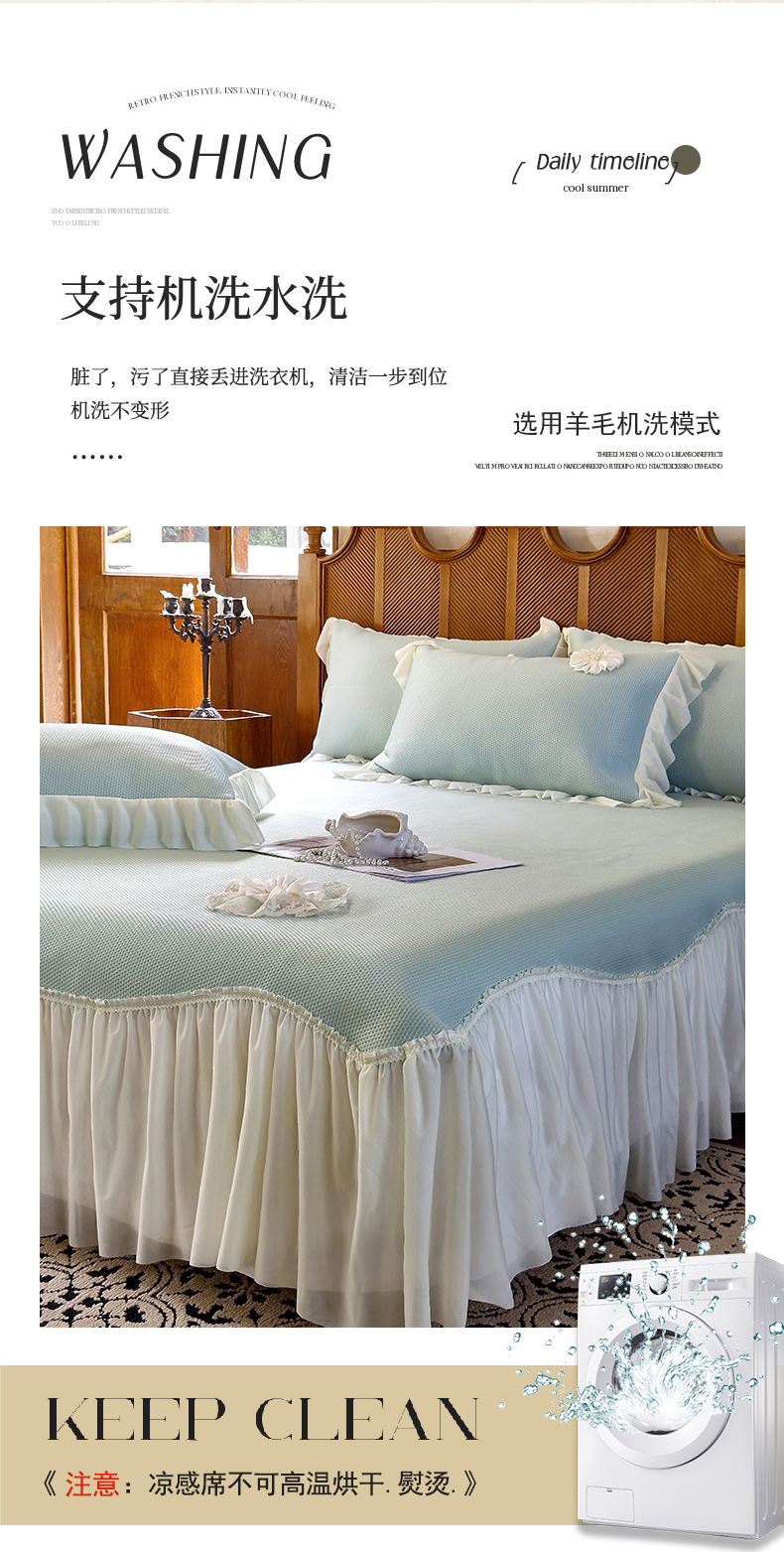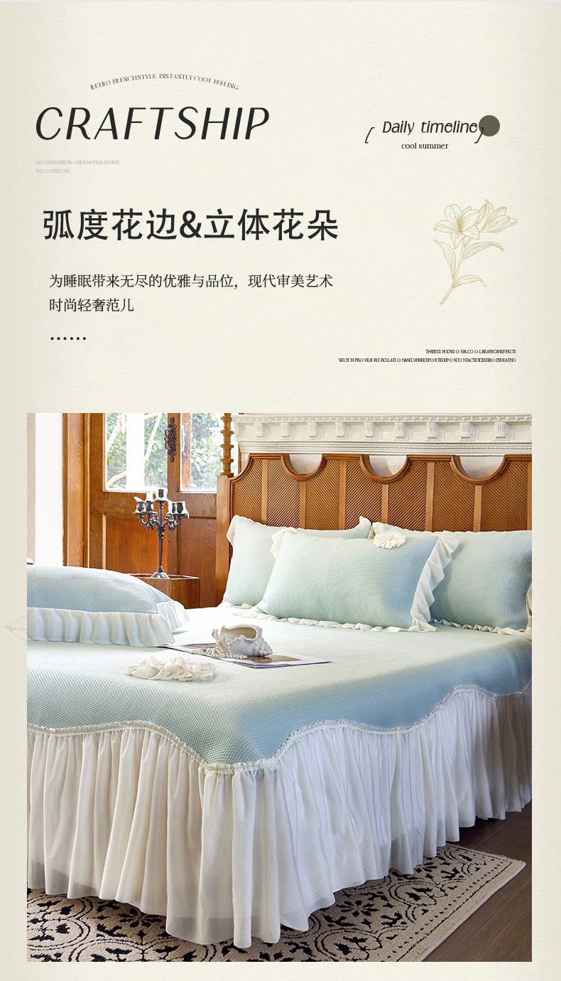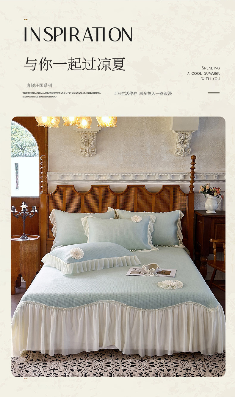 (总)乐朵家居 2026新款 25-3郁金香 天丝缎蕾丝床裙+可配空调被,绿,豆沙,奶白,灰,紫,卡其