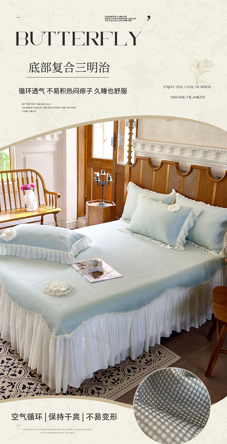 商品名称:乐朵家居 2025新款PE凉感软凉席三件套-法芙娜【控价238】 法芙娜抹茶绿