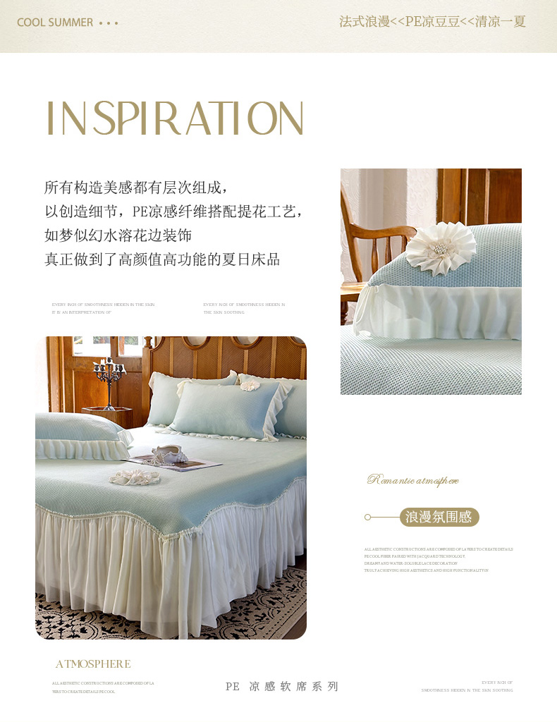 (总)乐朵家居 2026春夏 L-3花颂 蕾丝床裙,奶白,玉,绿,蓝,豆沙