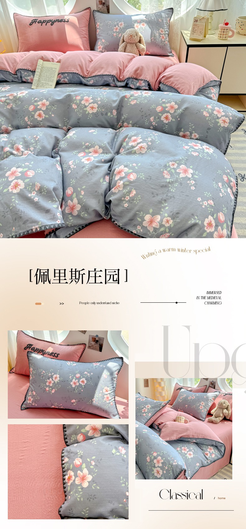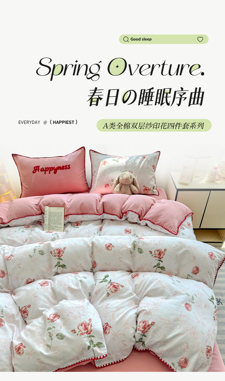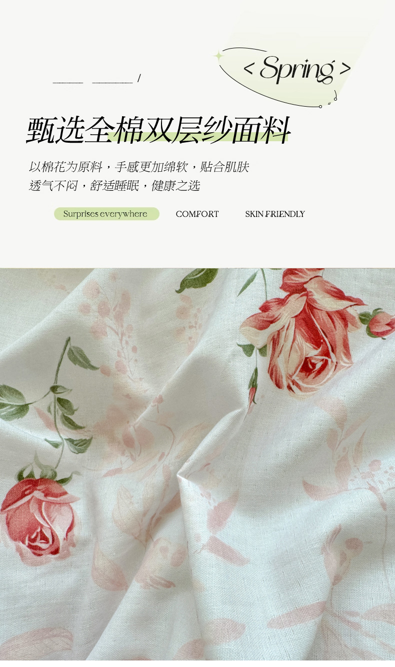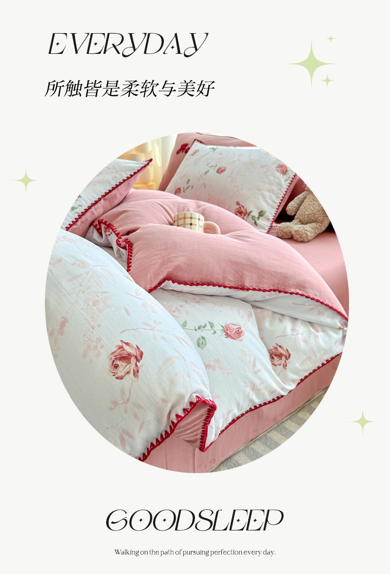 当前位置: 91家纺网 > 商品网购 > 床品套件 > 四件套 > 全棉普通四件套 > 恋佳居 2026新款A类全棉有氧双层纱印花毛巾绣贝壳边四件套 不止玫瑰