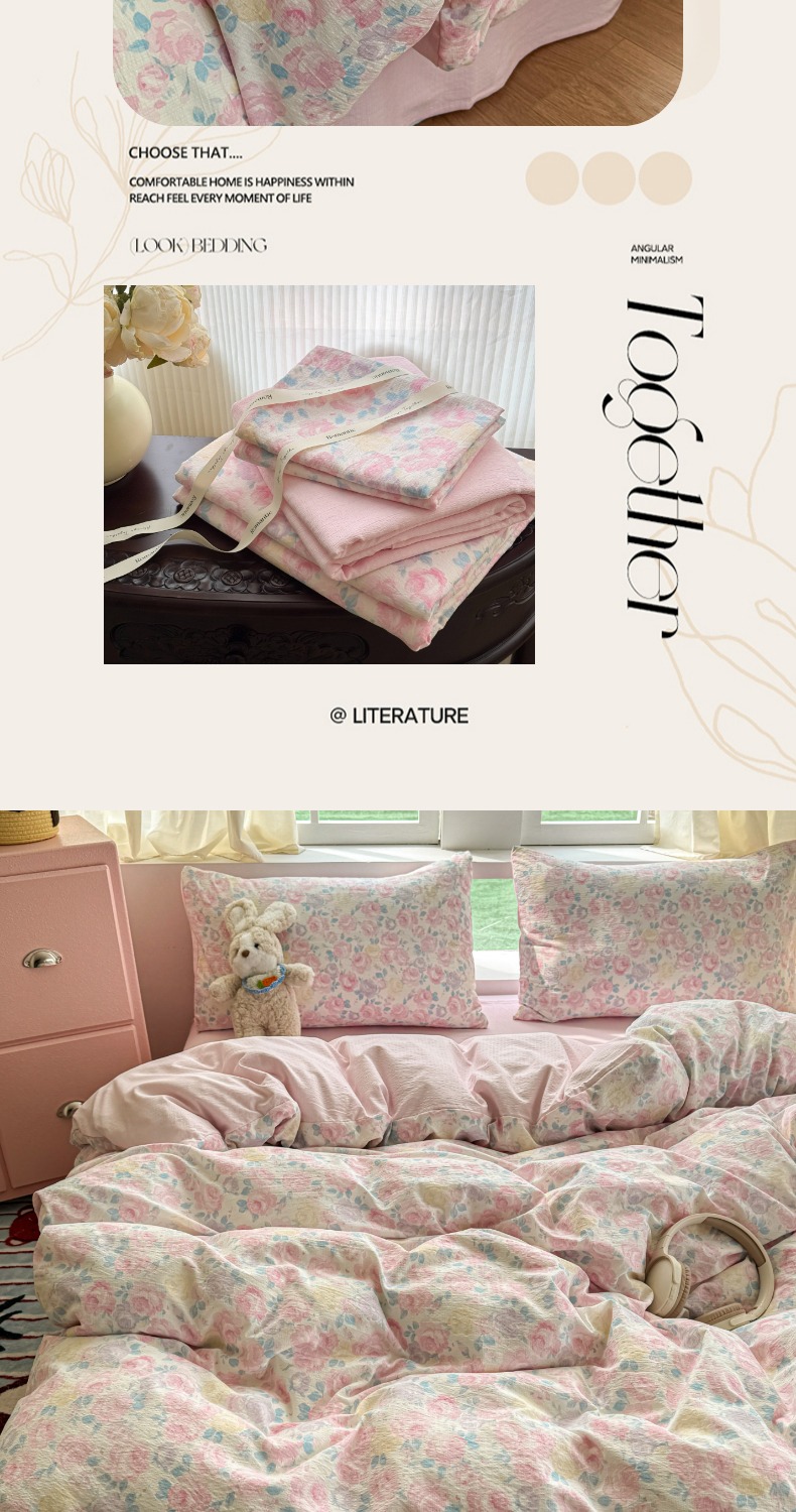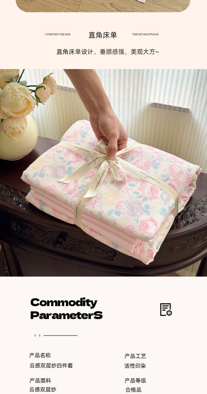 (总)艾特你 高克重云感木棉皱皱针织双层纱四件套学生宿舍三件套