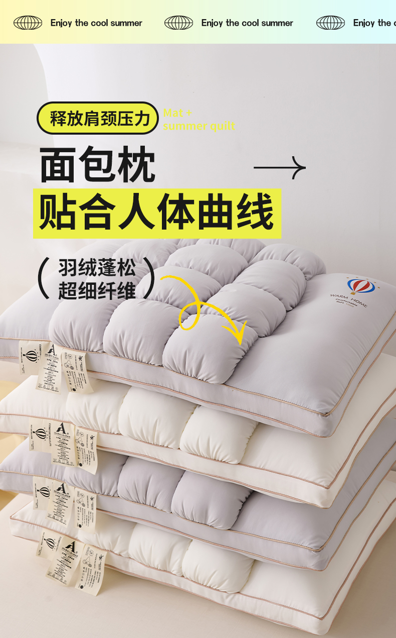 当前位置: 91家纺网 > 商品网购 > 枕头/枕芯/保健枕/颈椎枕 > 普通枕芯 > 珍贝家纺 2025新款热亲肤舒适汽球面包枕波萝枕头枕芯 菠萝包-灰色 48x74cm/只