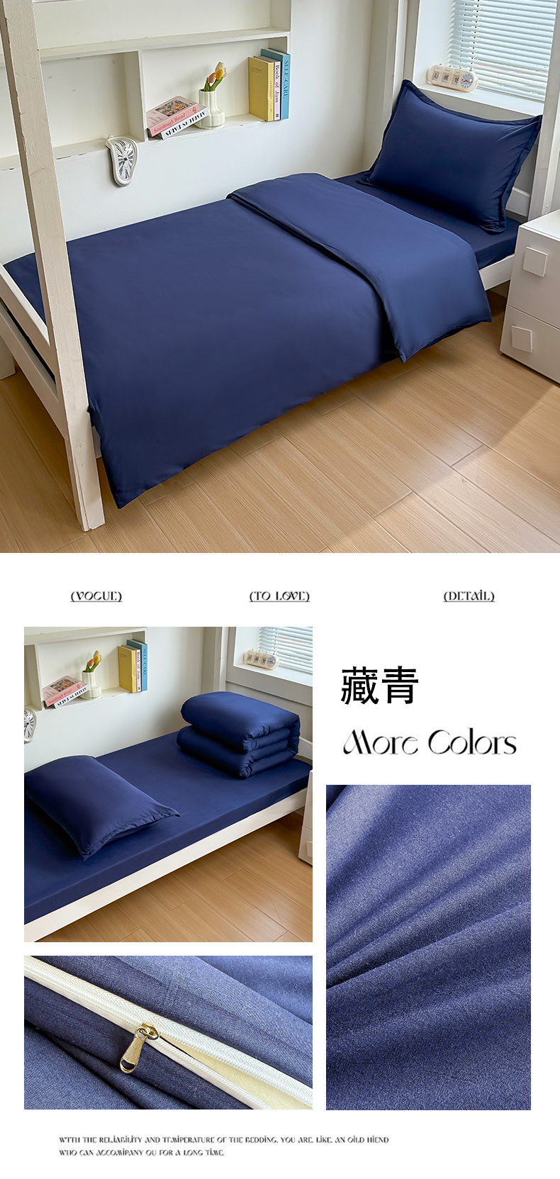 • 91家纺网 家纺一手货源 找家纺 茗婷家纺 2025供外贸跨境纯色床单笠学生三件套上下铺三件套军训宿舍医院养老院 藏青