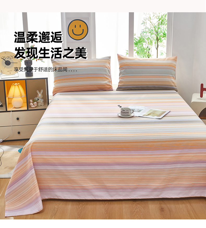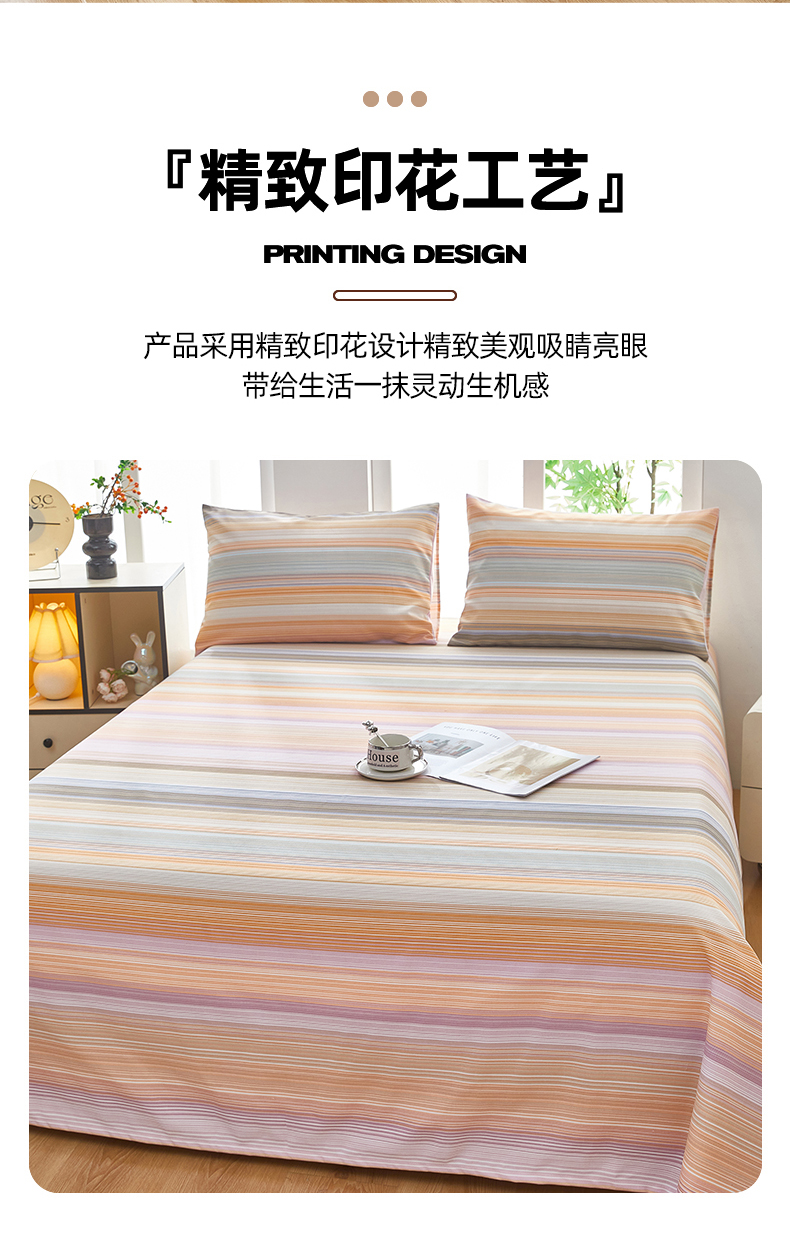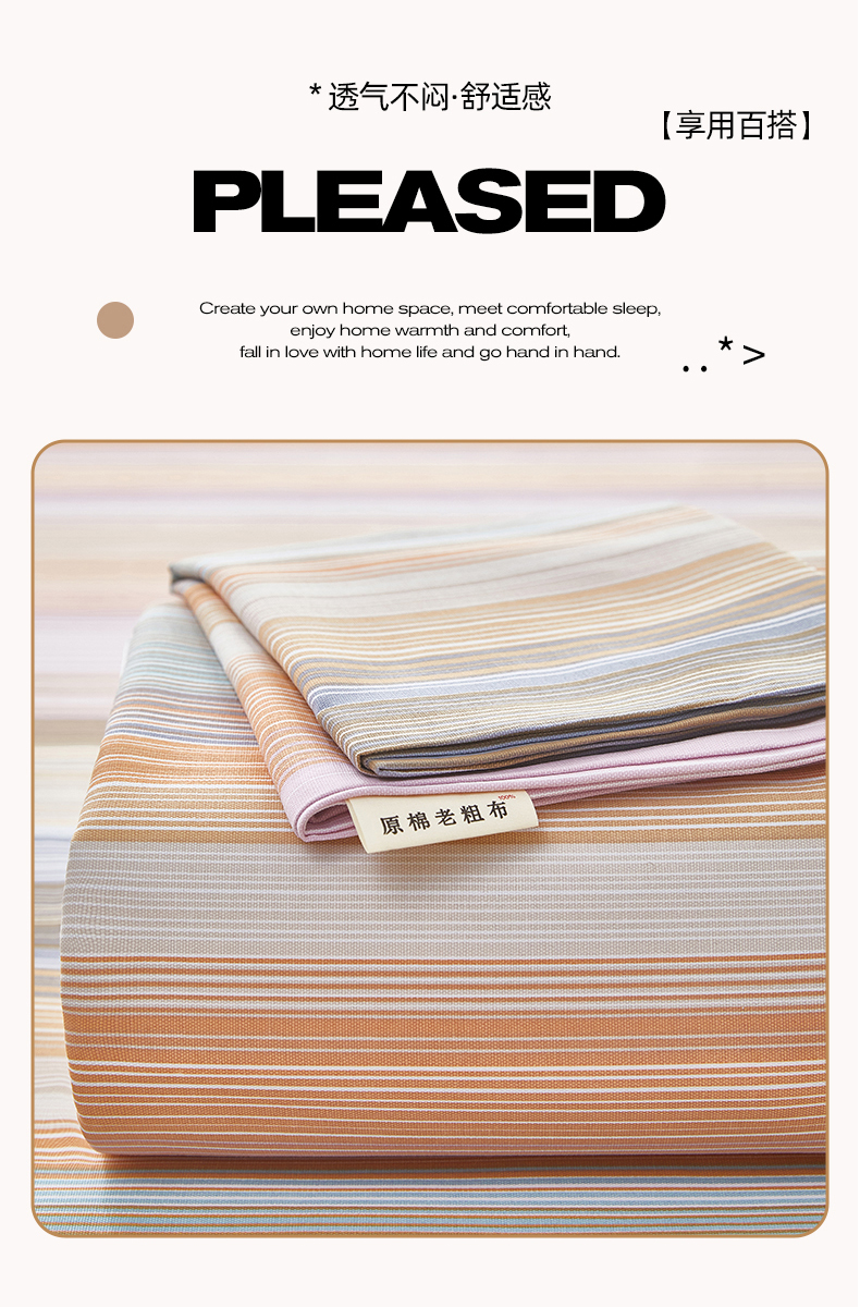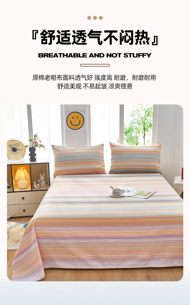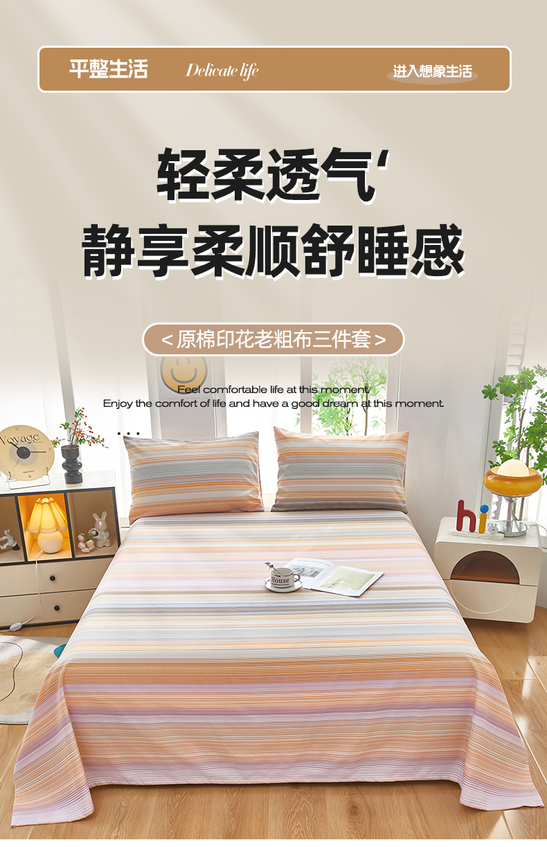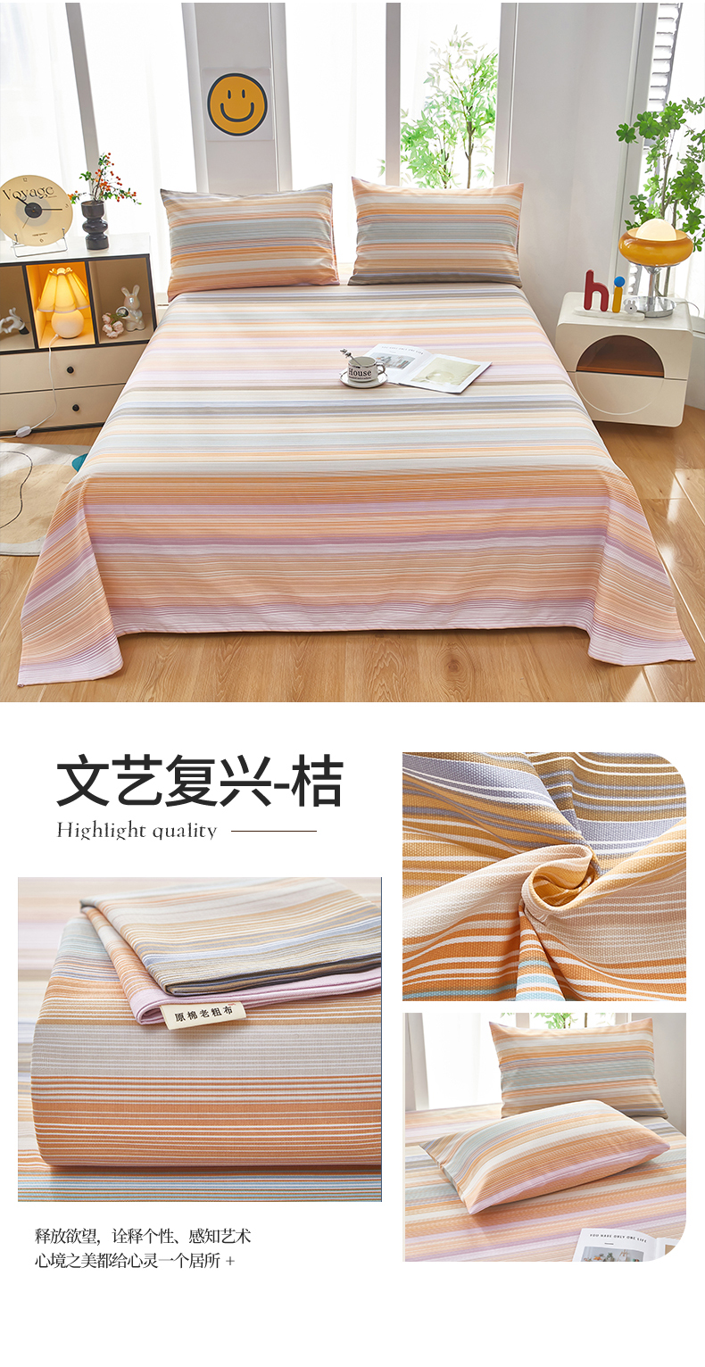 商品名称:雲归梦 2025新款原棉老粗布床单席子凉席印花三件套 文艺复兴-桔