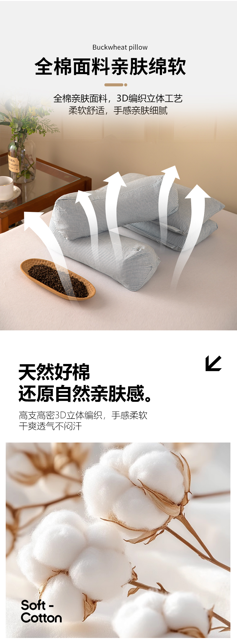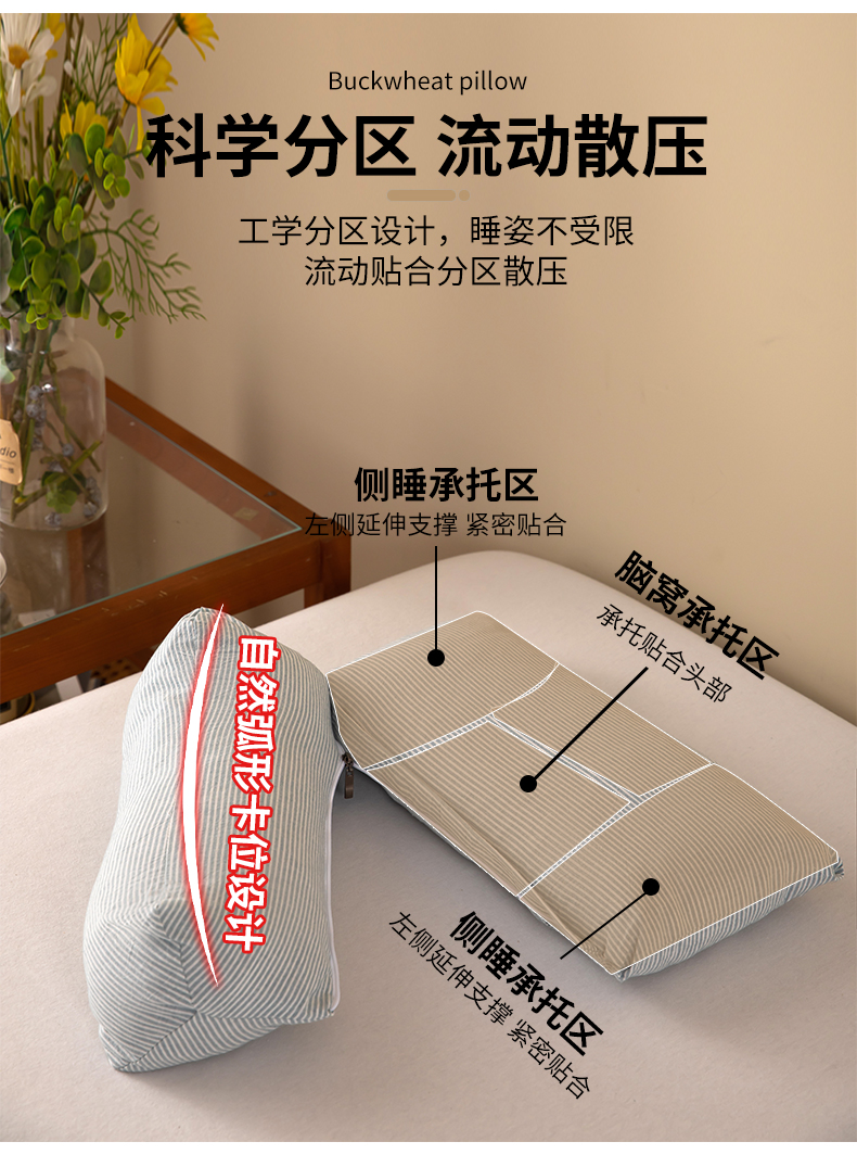 (总)九州枕芯 2025新款全棉草本荞麦枕枕头枕芯,草本荞麦枕
