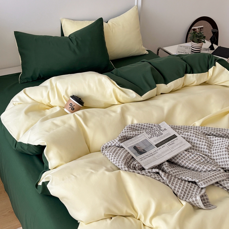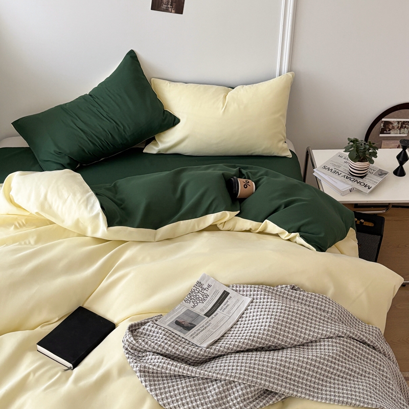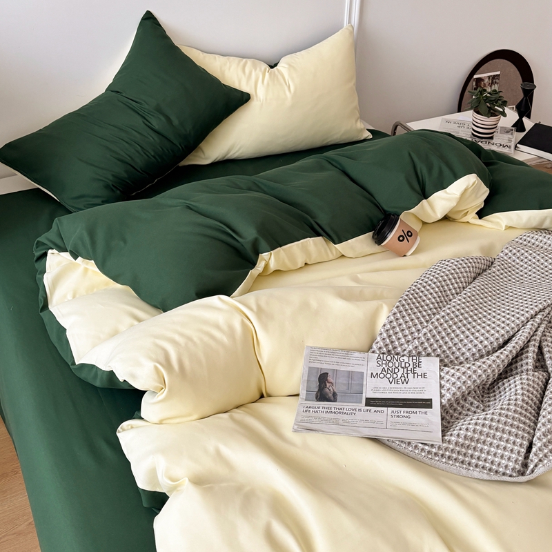 商品名称:百花王 2025新款亲肤舒适简约纯色水洗棉四件套 豆绿牛乳