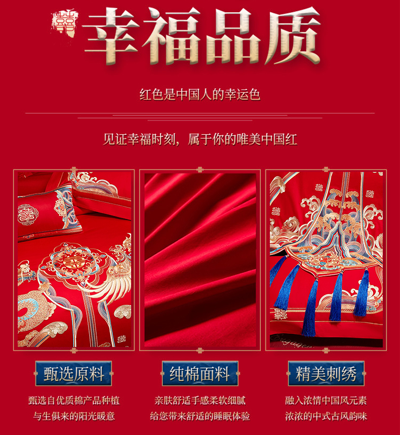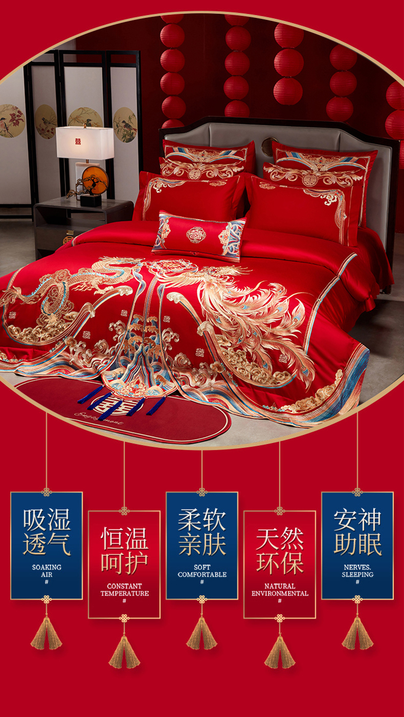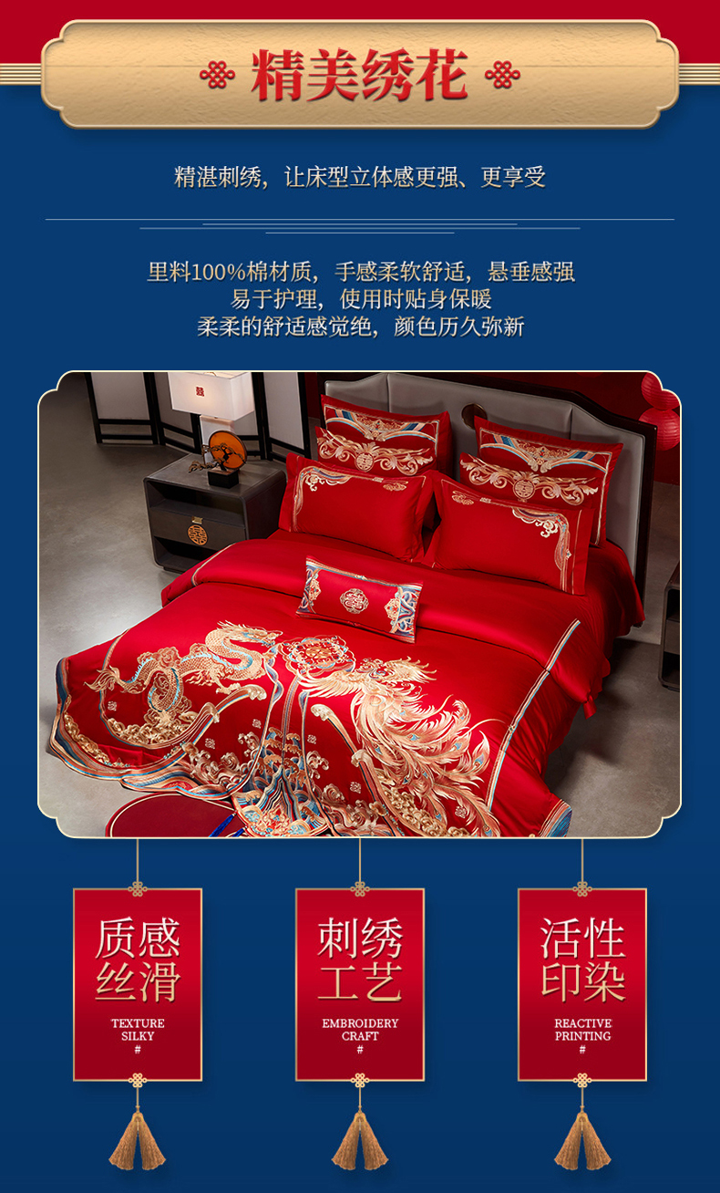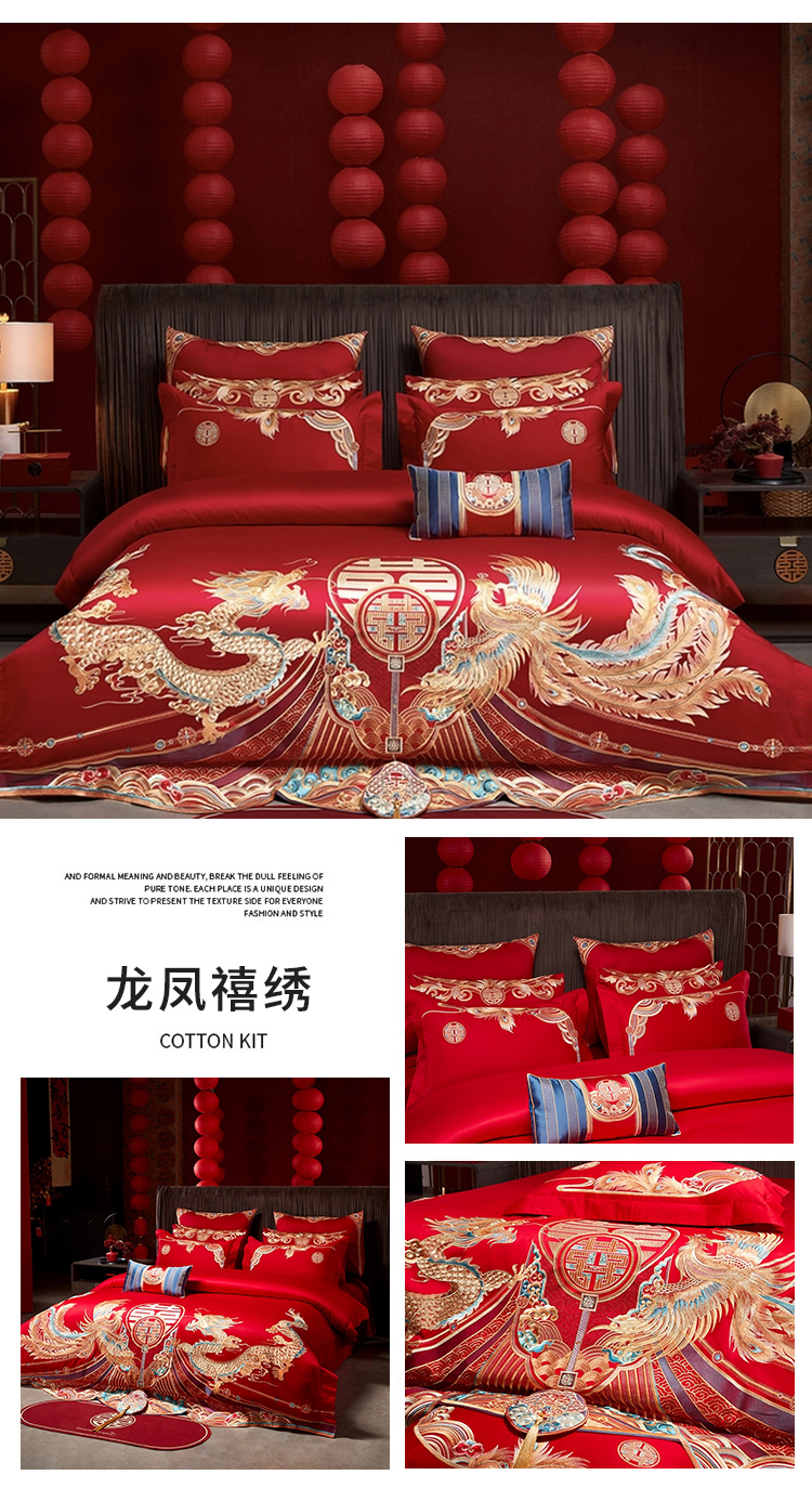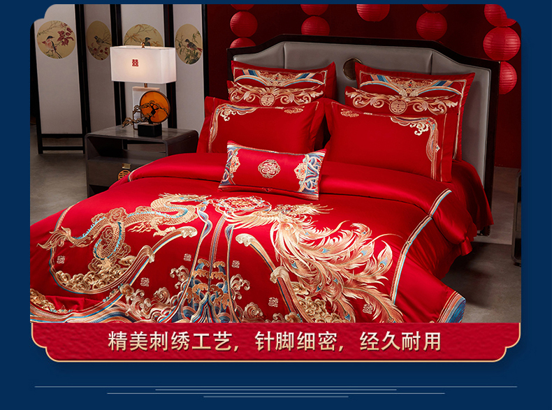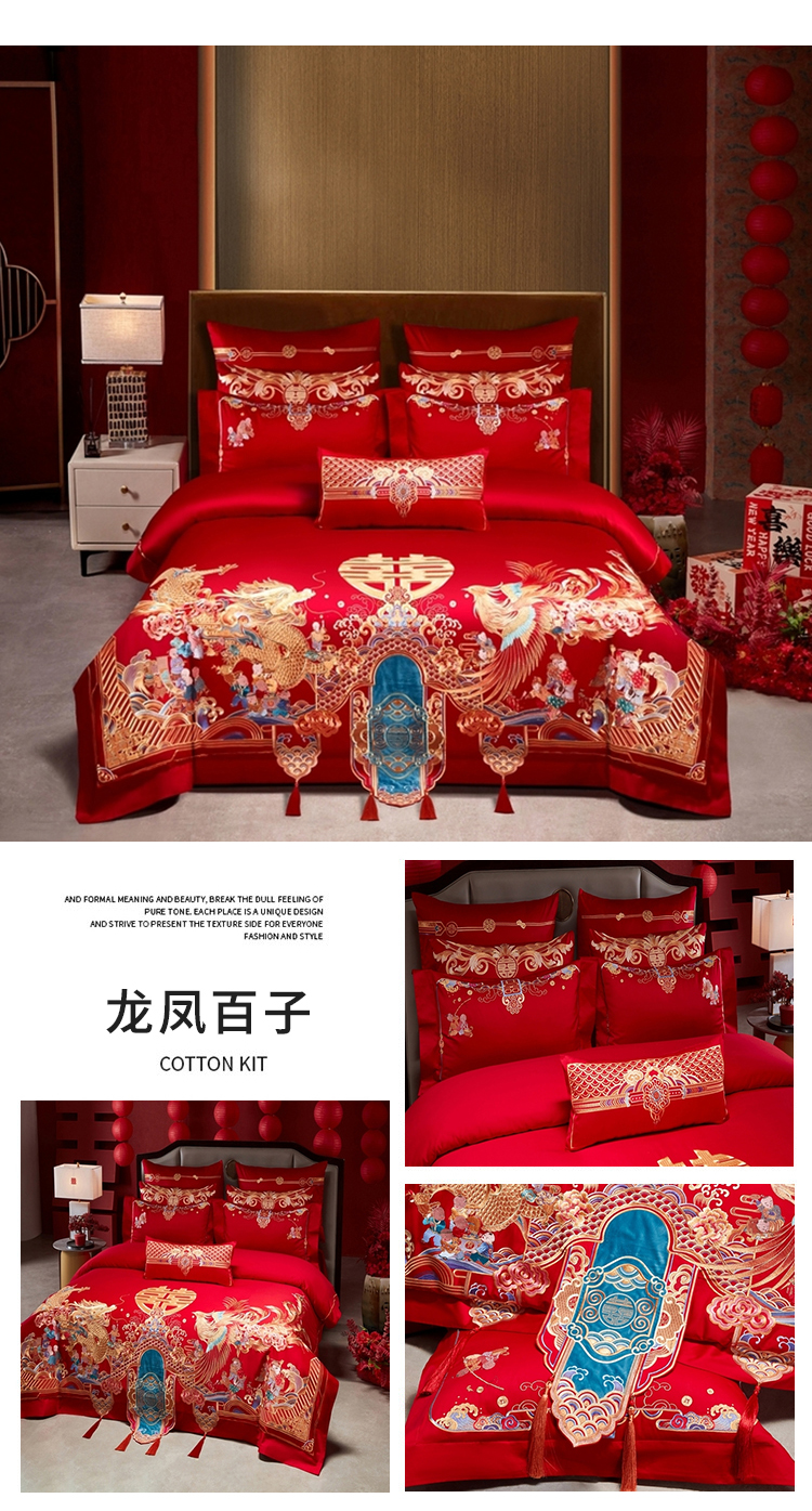 当前位置: 91家纺网 > 商品网购 > 床品套件 > 四件套 > 婚庆四件套 > 用心 2025年新款长绒棉重工绣花婚庆四件套多件套 龙凤百子