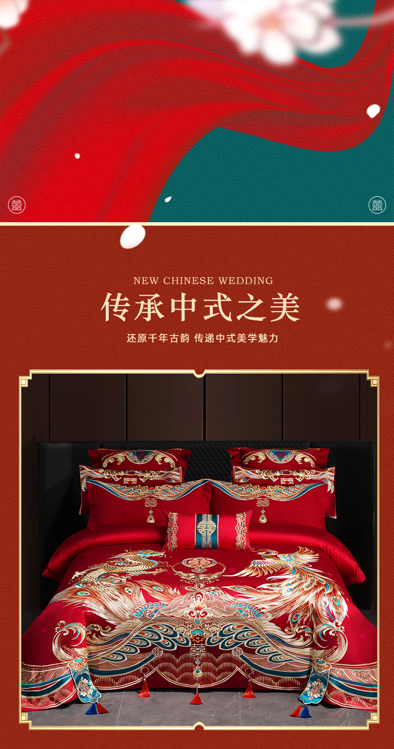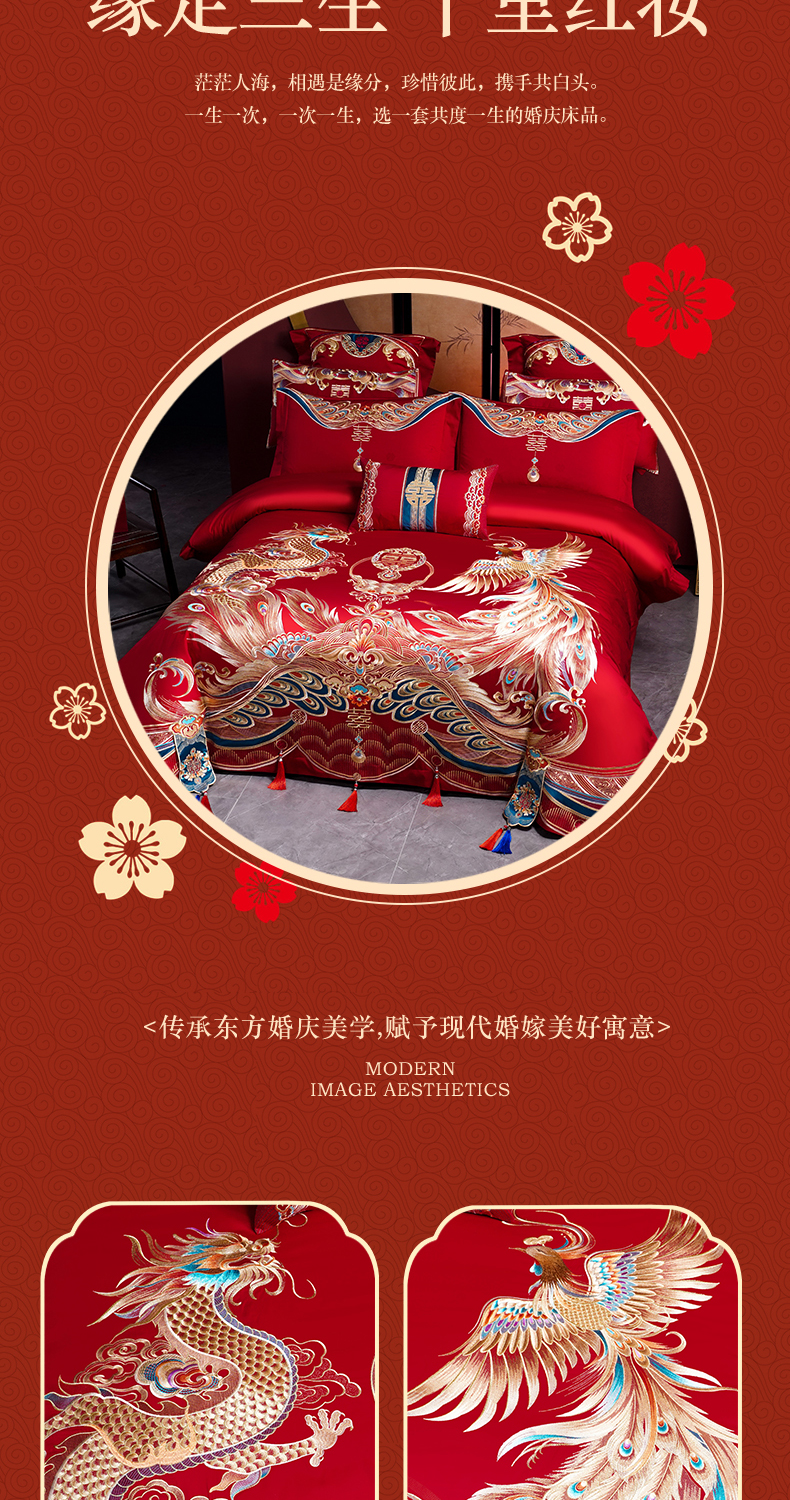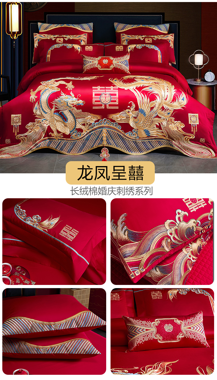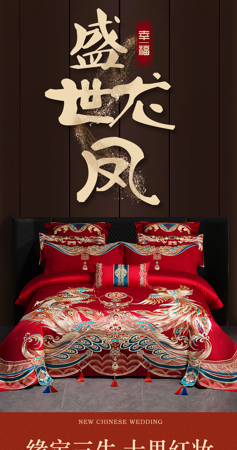 当前位置: 91家纺网 > 商品网购 > 床品套件 > 多件套 > 多件套 > 用心 2025新款长绒棉刺绣新中式婚庆多件套系列 盛世龙凤