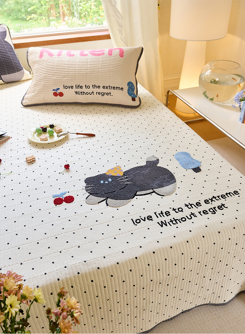 当前位置: 91家纺网 > 商品网购 > 床品套件 > 三件套 > 鑫喜莱家纺 2025新款毛巾绣云朵棉床盖三件套 包装展示
