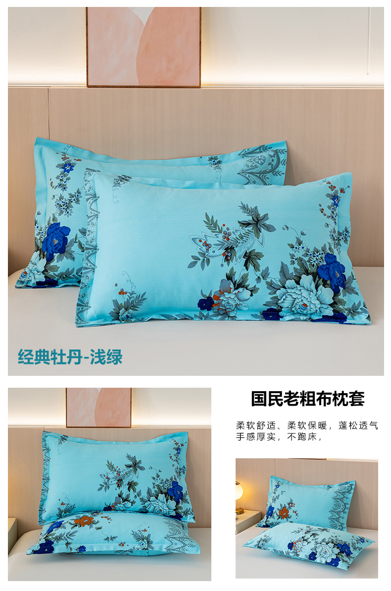 居美良品2025新款国民老式床单经典牡丹配套枕套 经典牡丹-浅绿