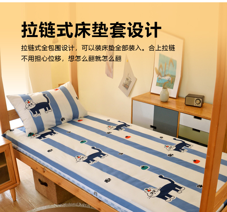 商品名称:水妙家纺 2025新款A类全棉拉链床垫套三件套纯棉学生上下铺全包床垫保护套三件套 可订制 床垫套猫达人