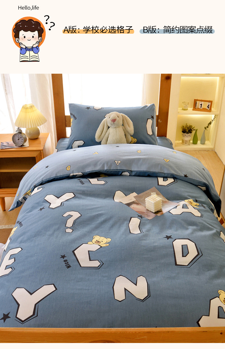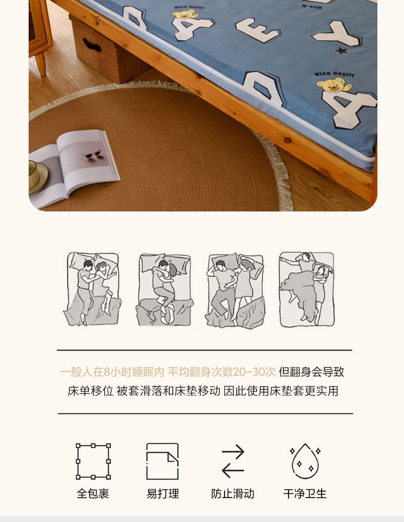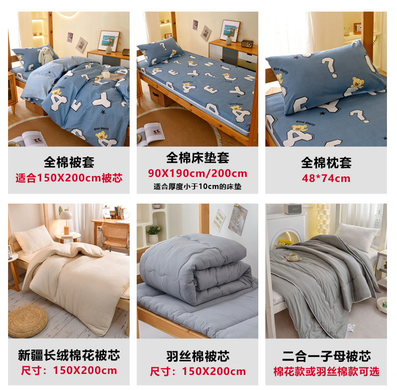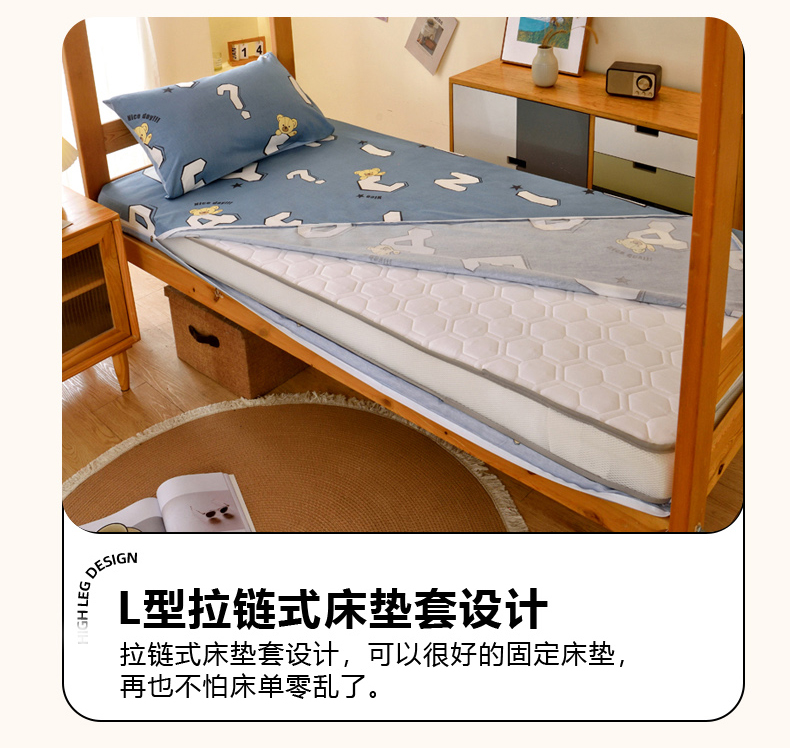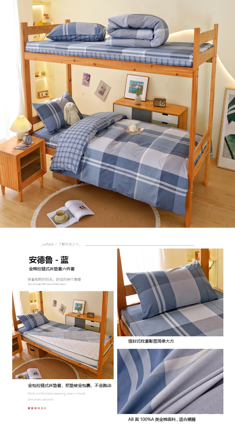 当前位置: 91家纺网 > 商品网购 > 床垫/床褥 > 普通床垫 > 水妙家纺 2025年新款A类全棉纯棉学生宿舍上下铺床垫套六件套三件套 床垫套布格熊-蓝