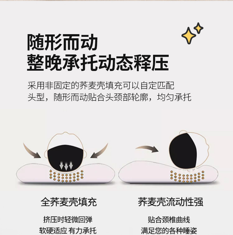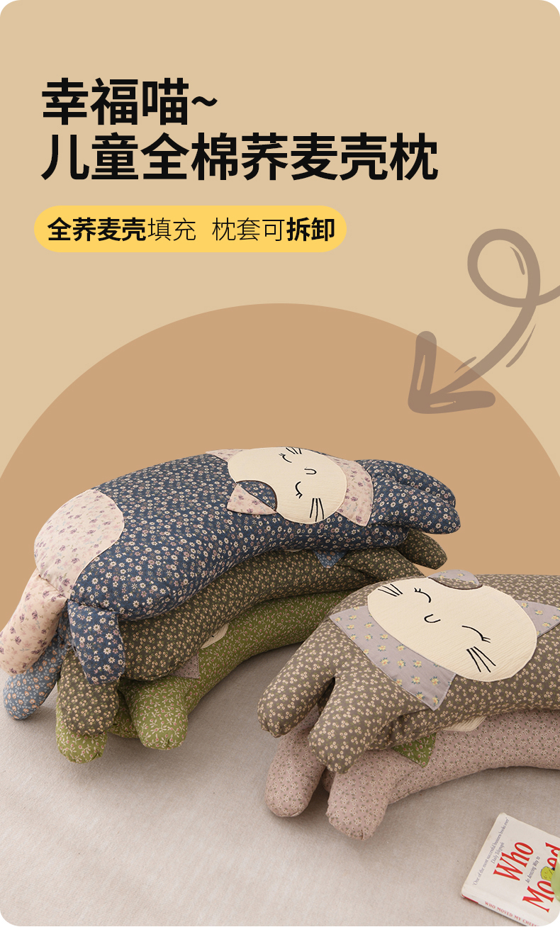 商品名称:(总)芯洲 2025新款幸福喵全棉纯棉荞麦壳枕枕头枕芯