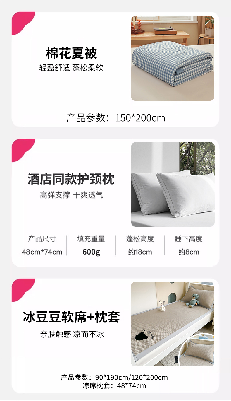 0.9m床笠款五件套【棉花夏被+枕芯+三件套】 | ¥115.00 |