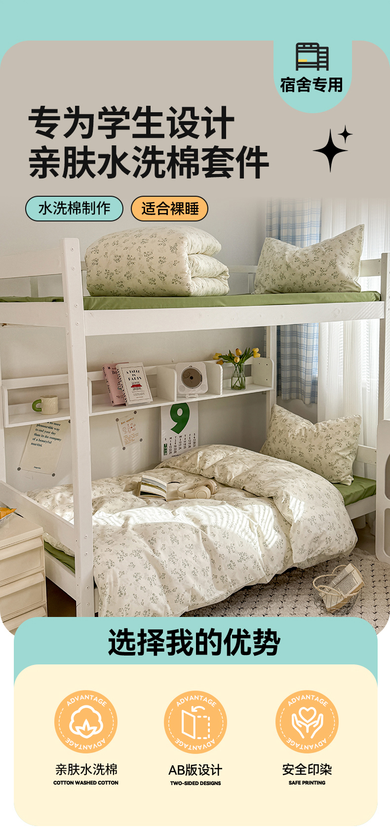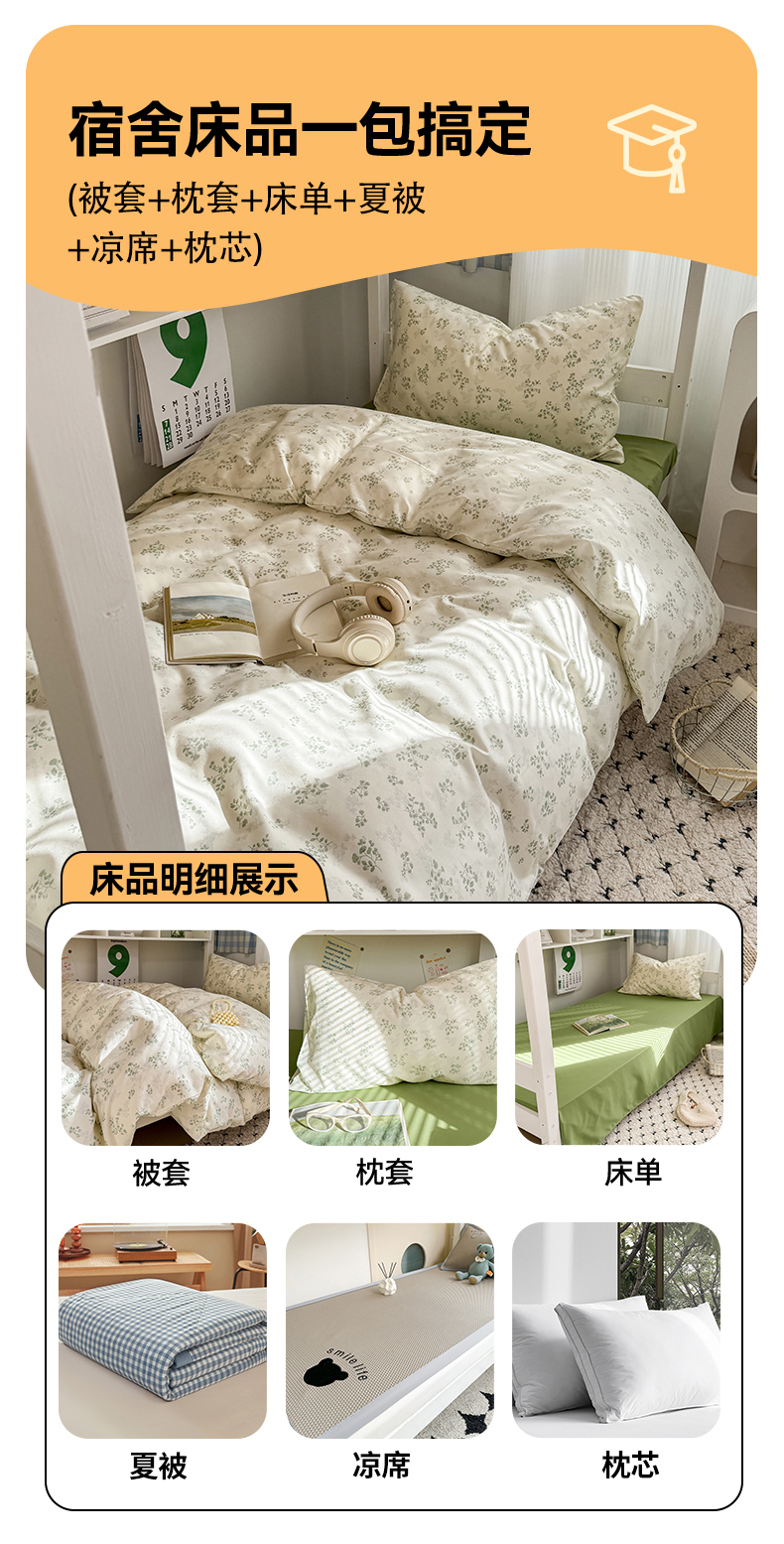 当前位置: 91家纺网 > 商品网购 > 床品套件 > 三件套 > 多品家纺 2025新款水洗棉学生宿舍上下铺大礼包三件套六件套 翠微