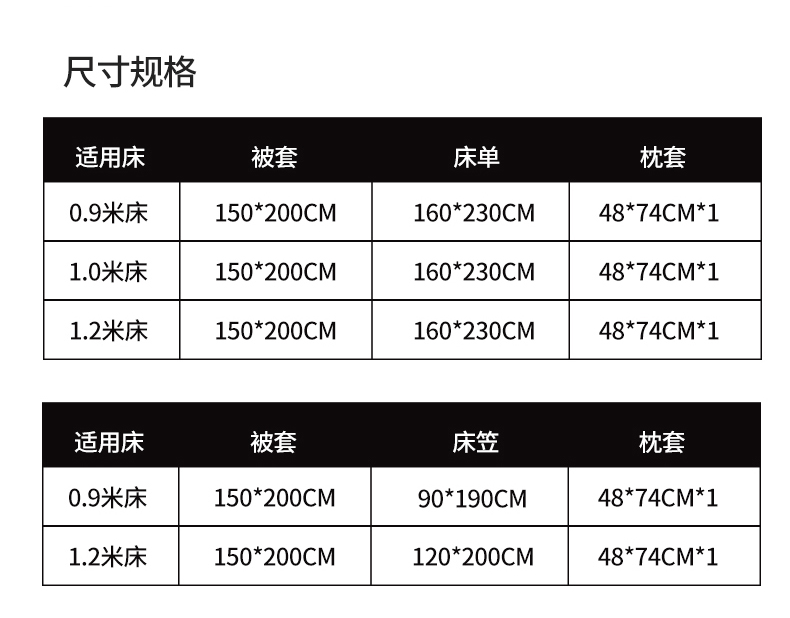 【床垫套款】0.9三件套-被套150x200 | ¥47.00 |