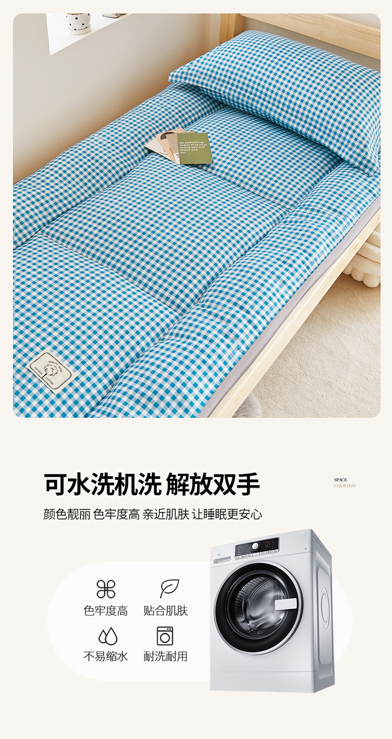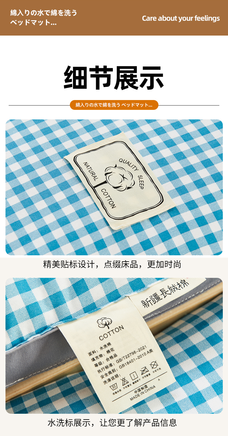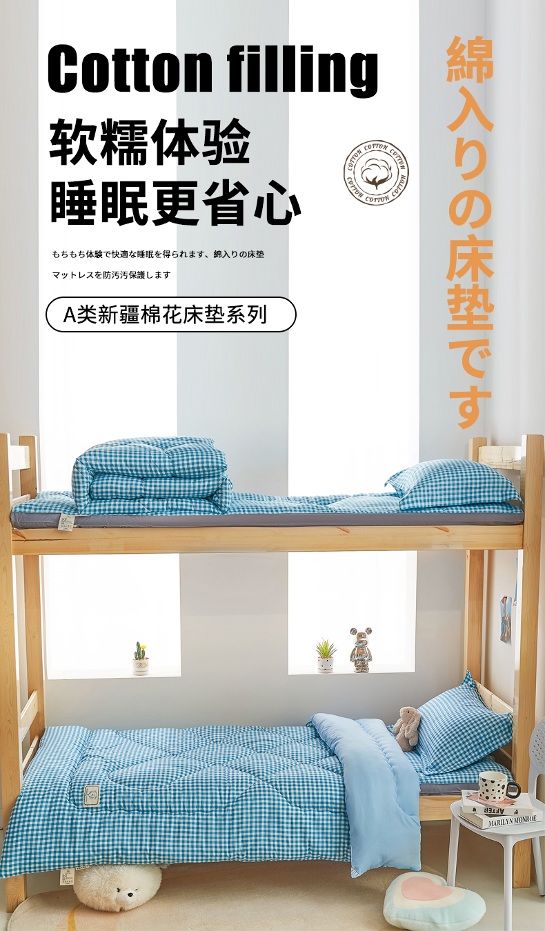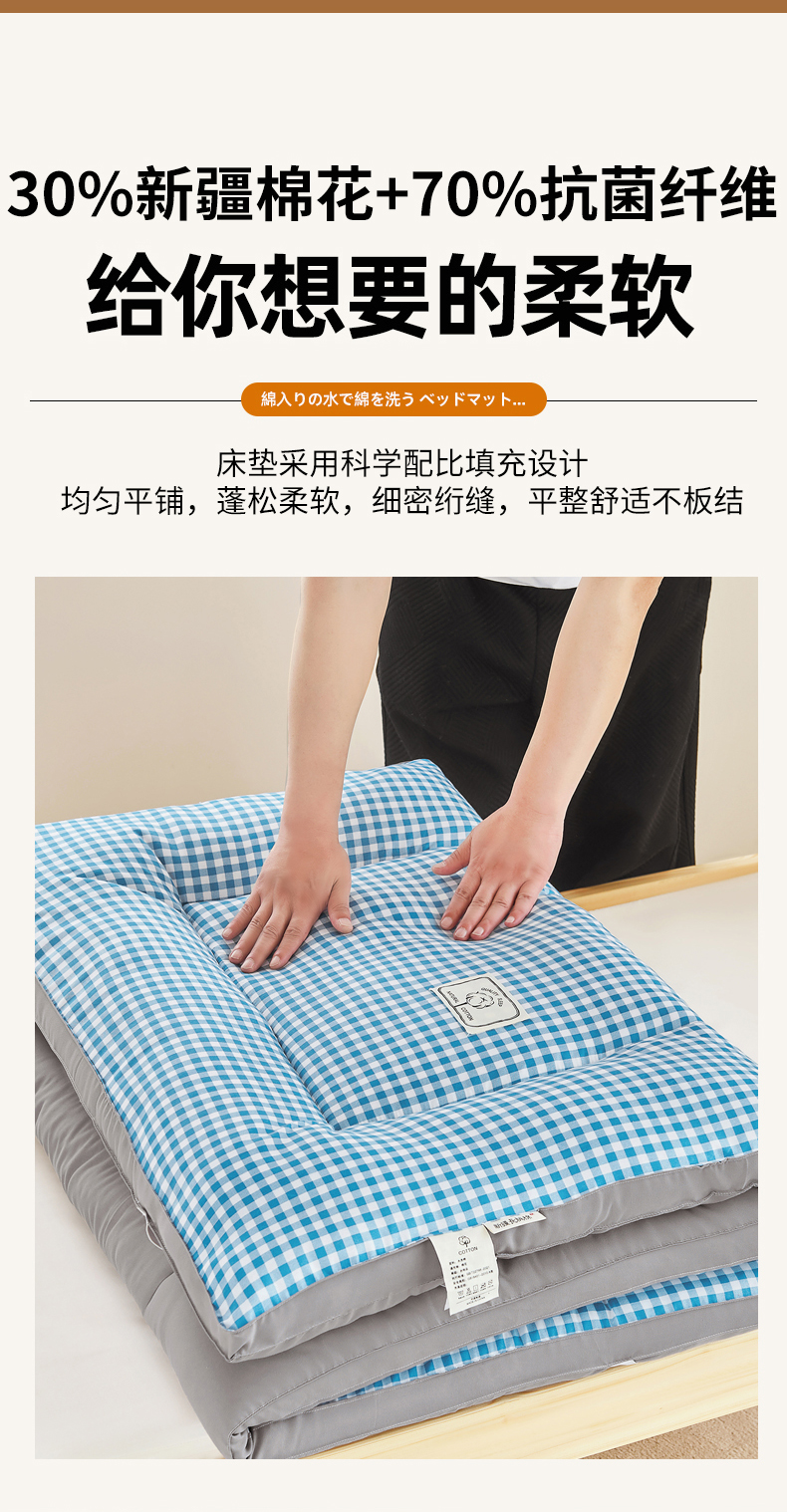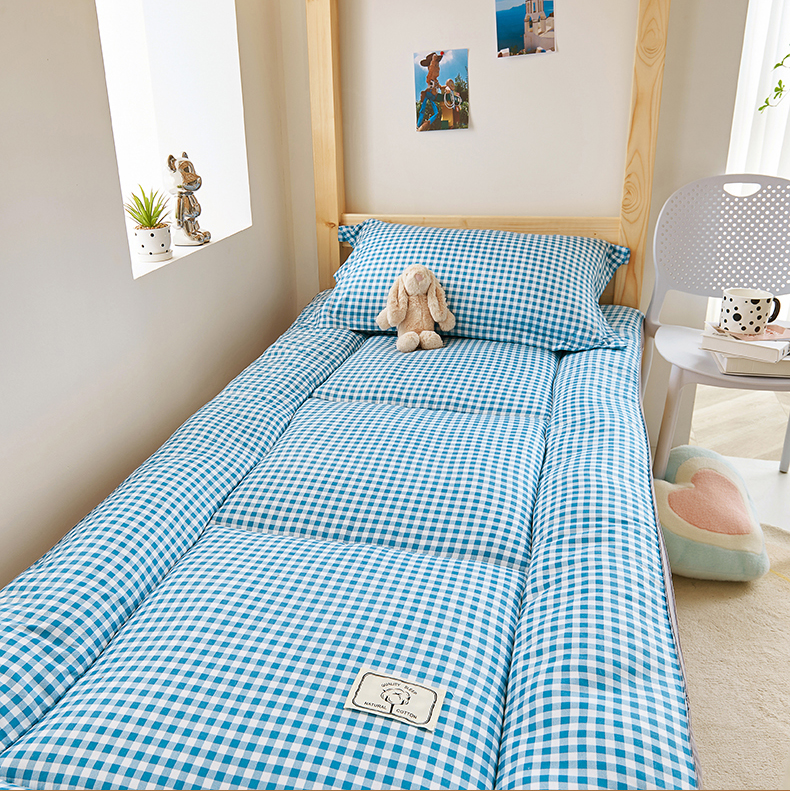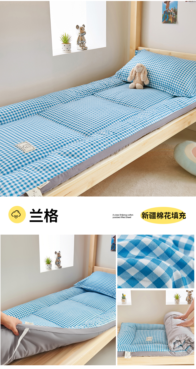 商品名称: 默忆2025新款水洗棉新疆棉花立体抗菌床垫【抽绳袋包装】 蓝小格