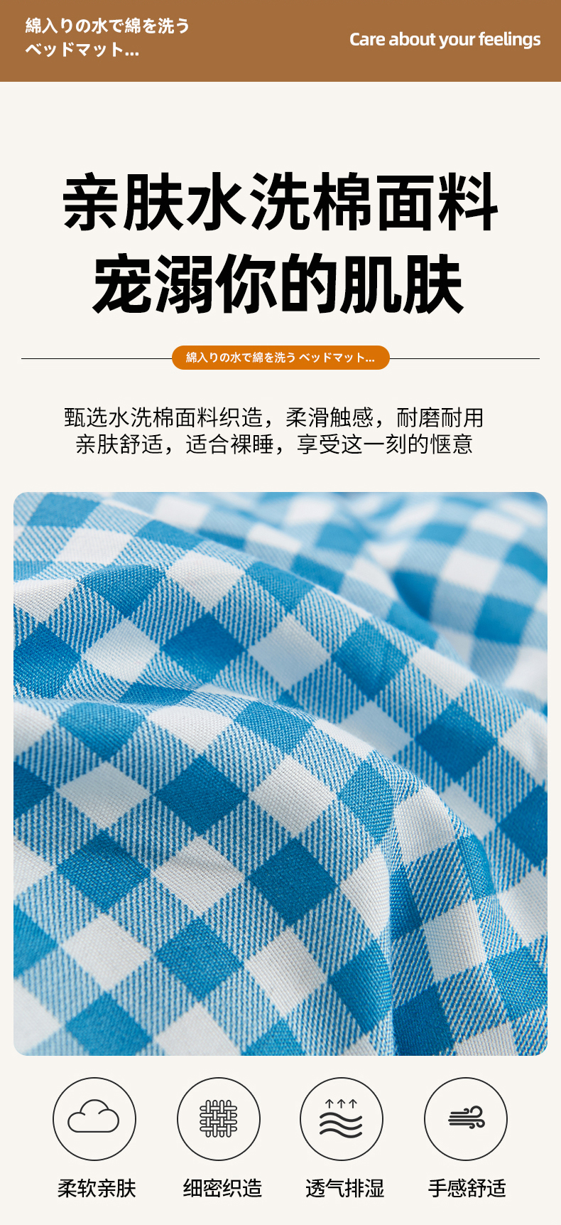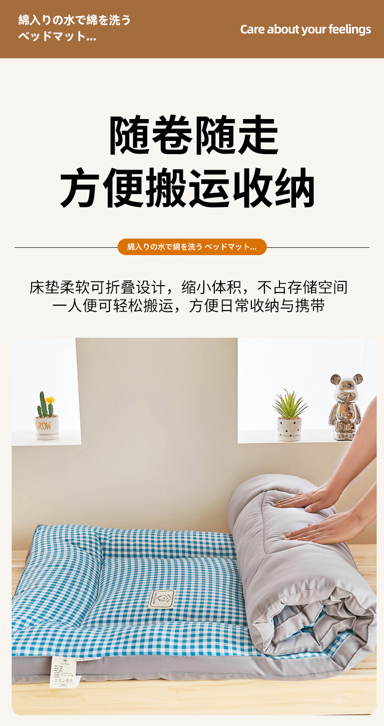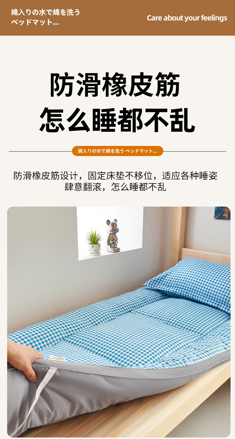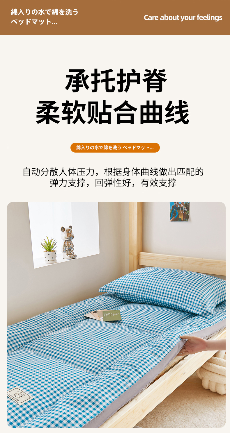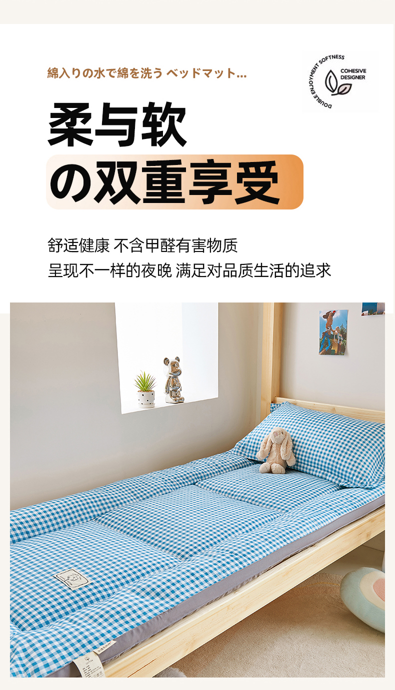商品名称: 默忆2025新款水洗棉新疆棉花立体抗菌床垫【抽绳袋包装】 蓝小格