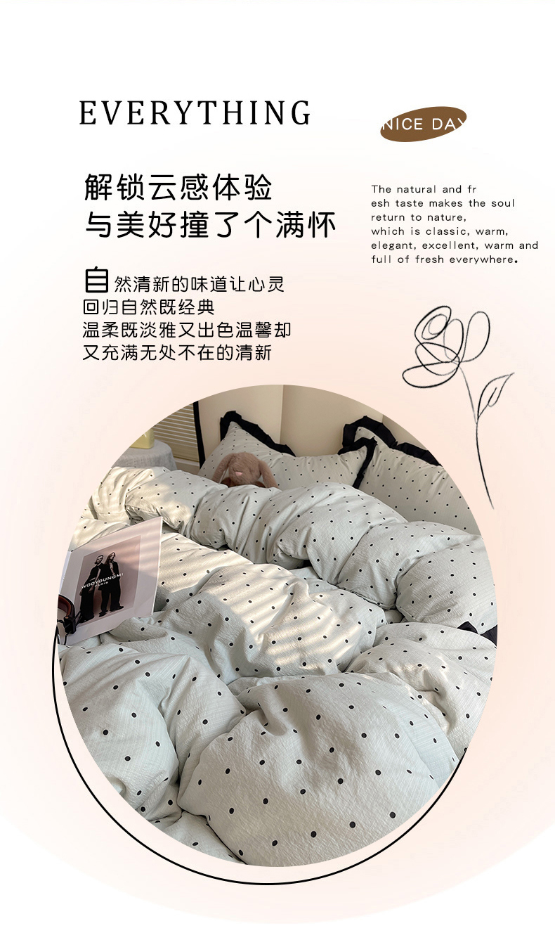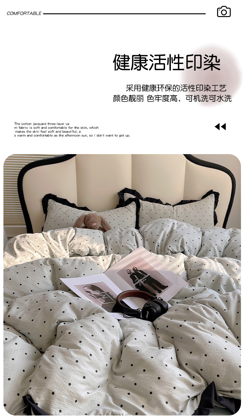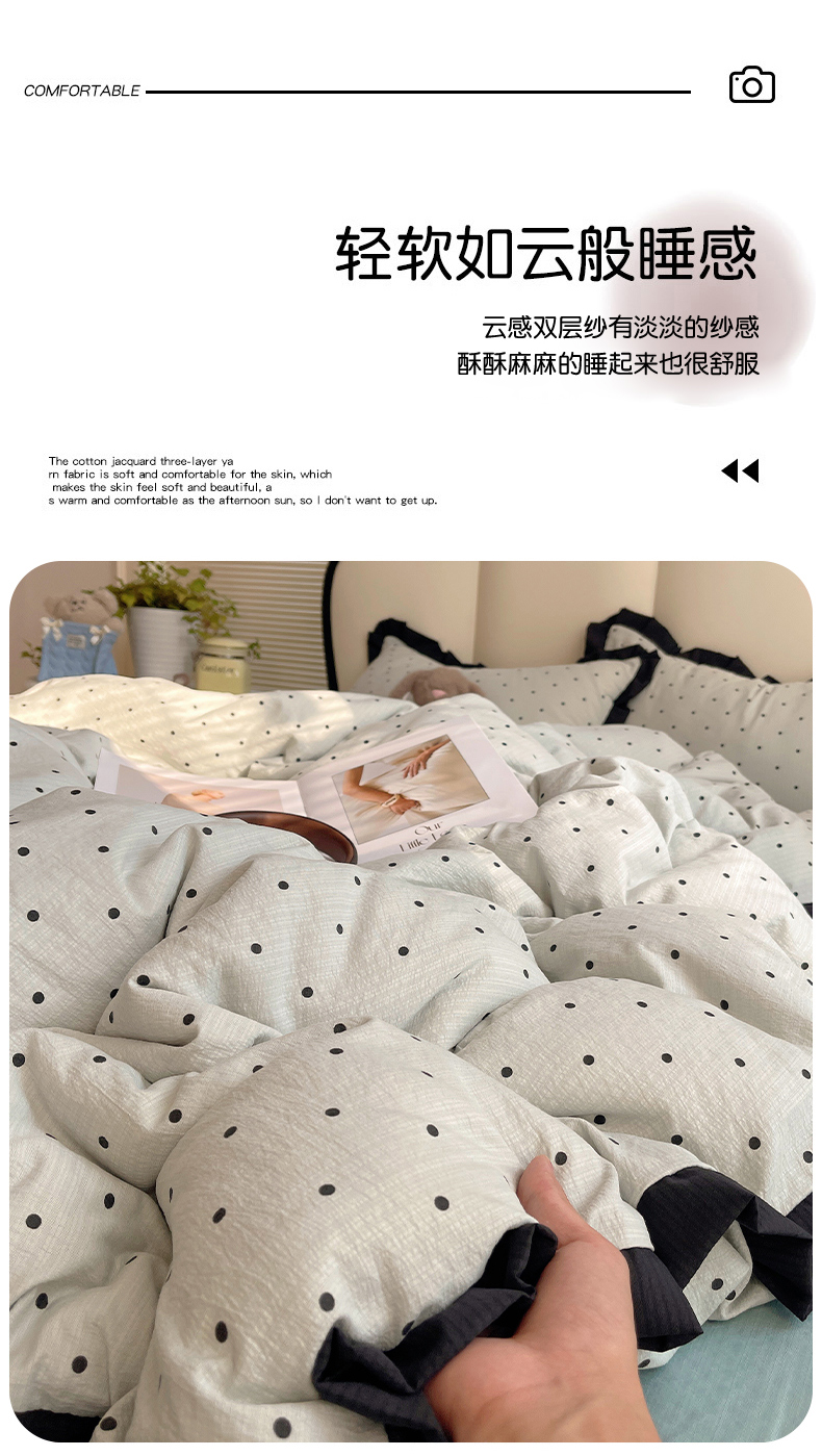 当前位置: 91家纺网 > 商品网购 > 床品套件 > 四件套 > 其它四件套 > 韩巢家纺 2025新款黑皱皱双层纱花边款被套四件套直播热销款学生宿舍床单三件套-(提供卖家秀) 蓝灰波点【黑皱皱花边款】
