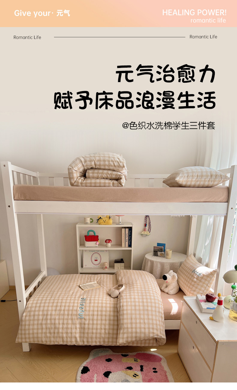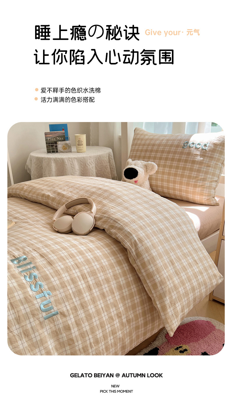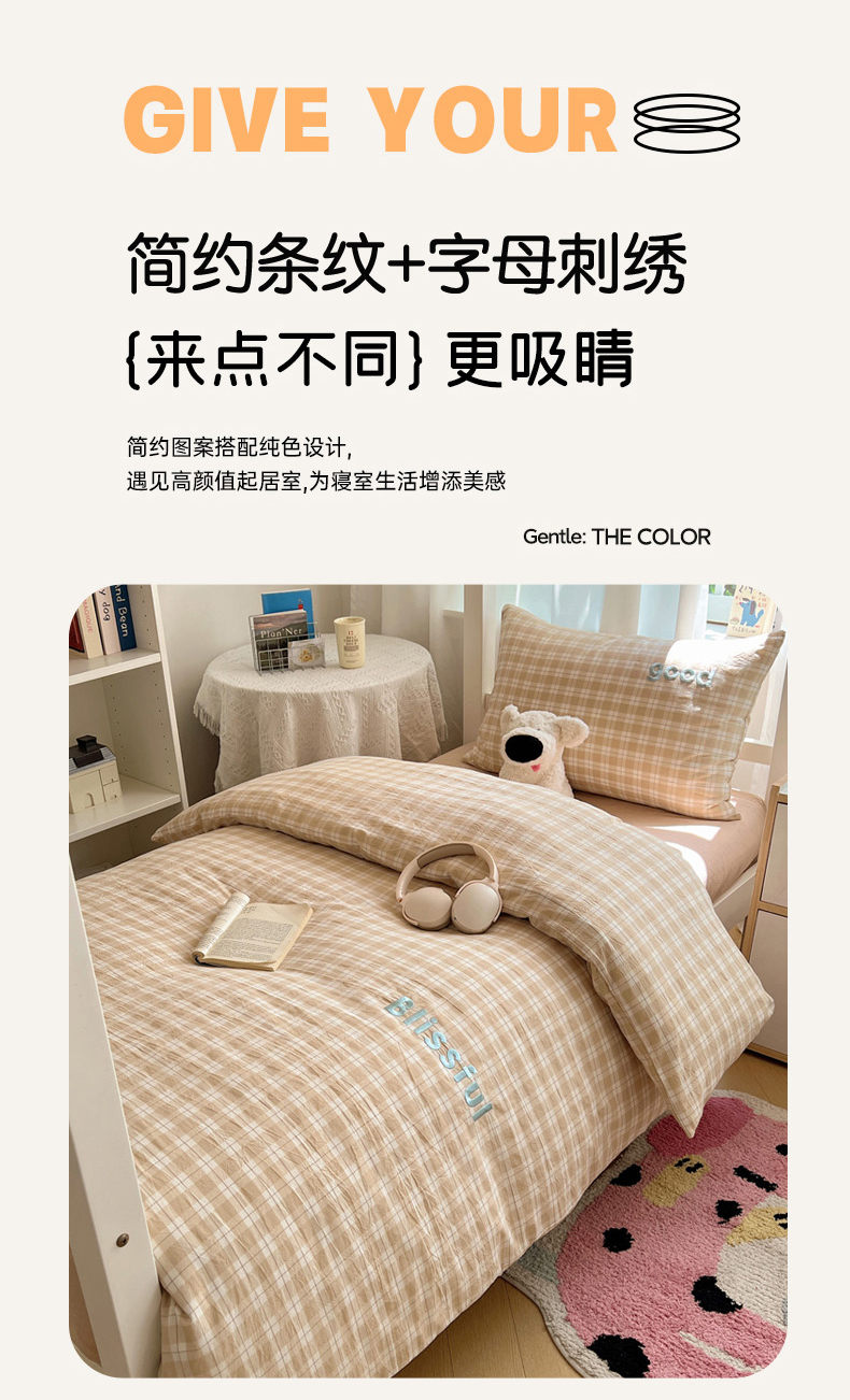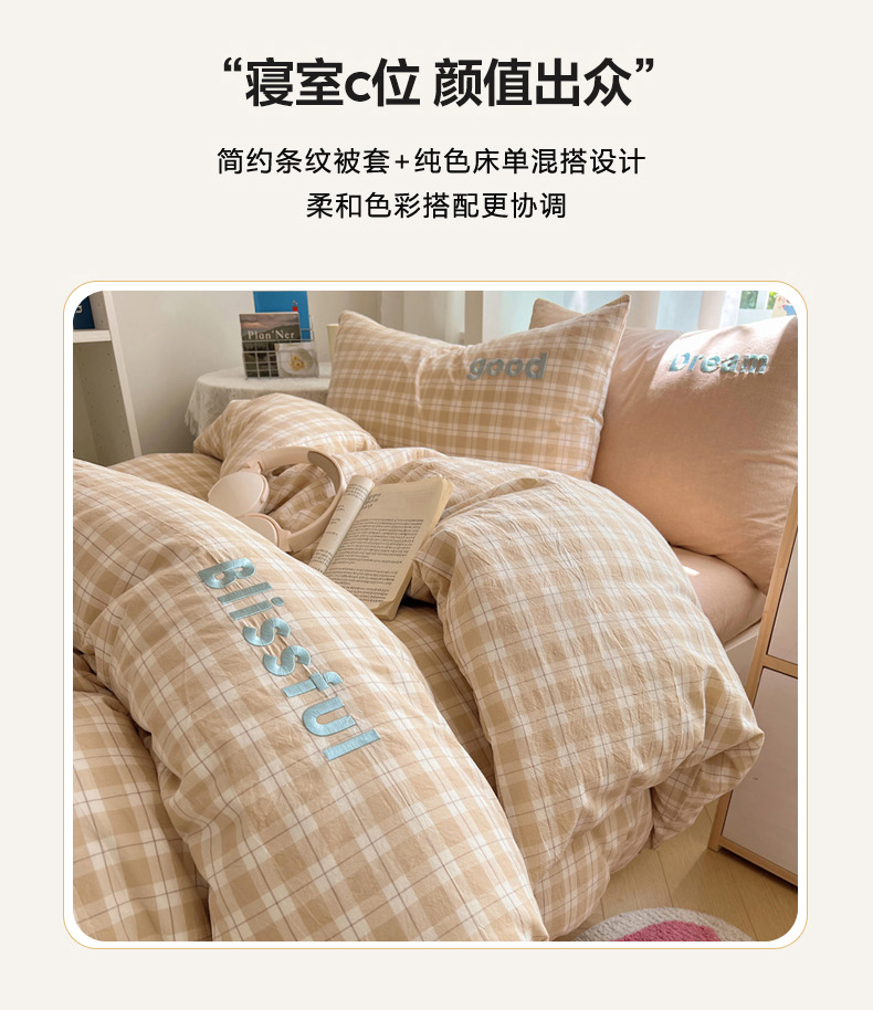 当前位置: 91家纺网 > 商品网购 > 床品套件 > 三件套 > 丽涵家纺 2025新款色织水洗棉刺绣学生三件套 尚格-咖