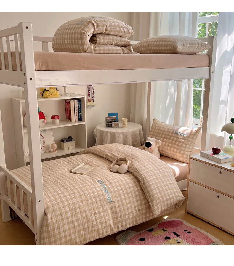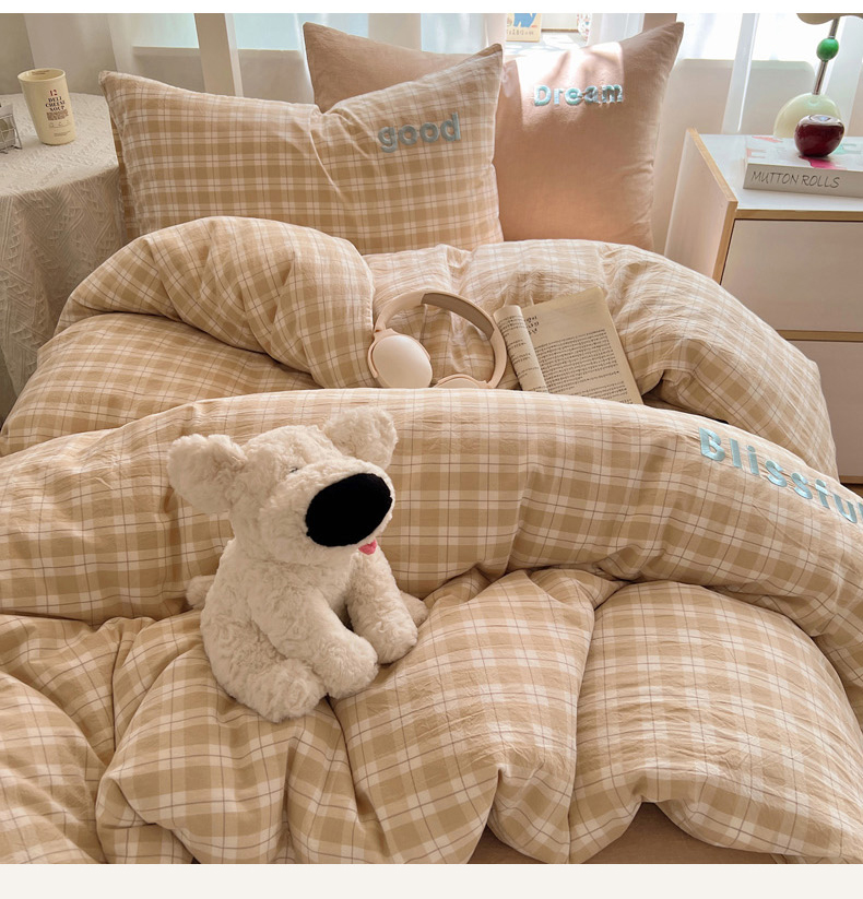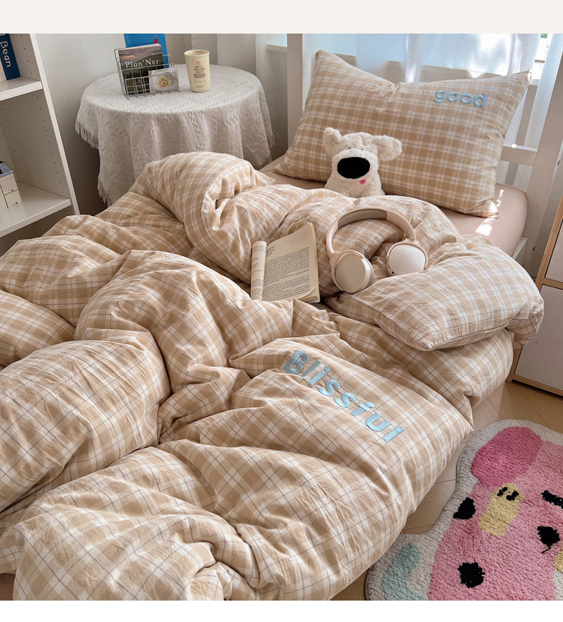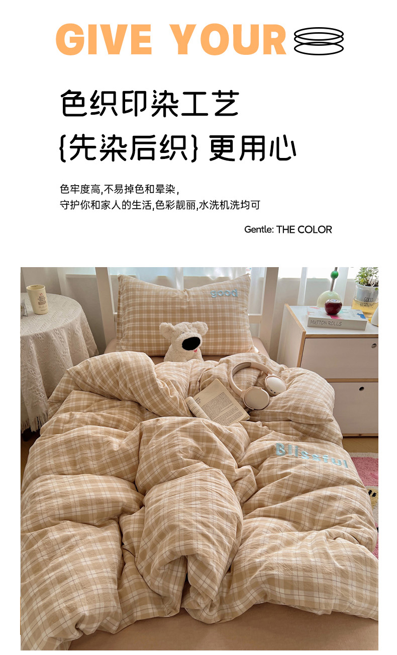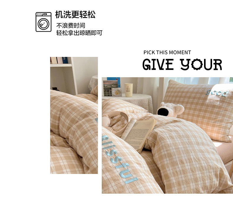 当前位置: 91家纺网 > 商品网购 > 床品套件 > 三件套 > 丽涵家纺 2025新款色织水洗棉刺绣学生三件套 尚格-咖