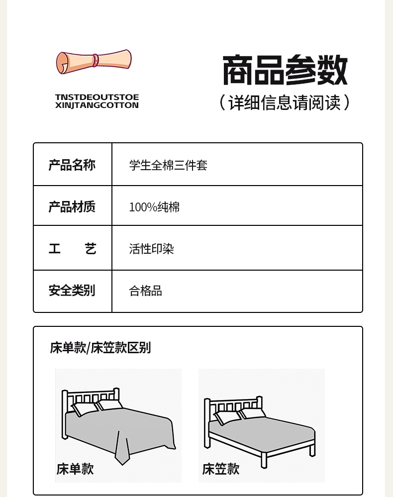 商品名称:(总)可恩欣 2025新款学生全棉三件套