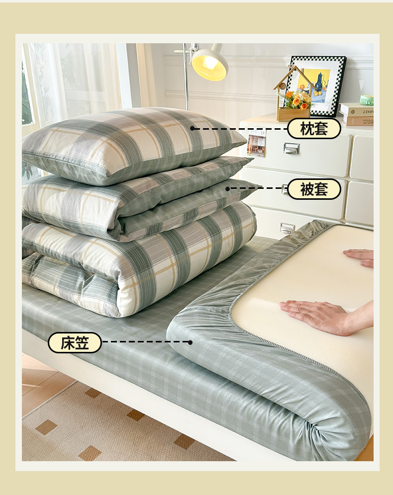 (总)可恩欣 2025新款色织全棉水洗棉四件套-记忆,合元蓝,曼特绿,莫奈红,莫奈灰,日落灰,晚晴咖,晚晴兰,云柚咖,芸素红,芸素黄,芸素咖