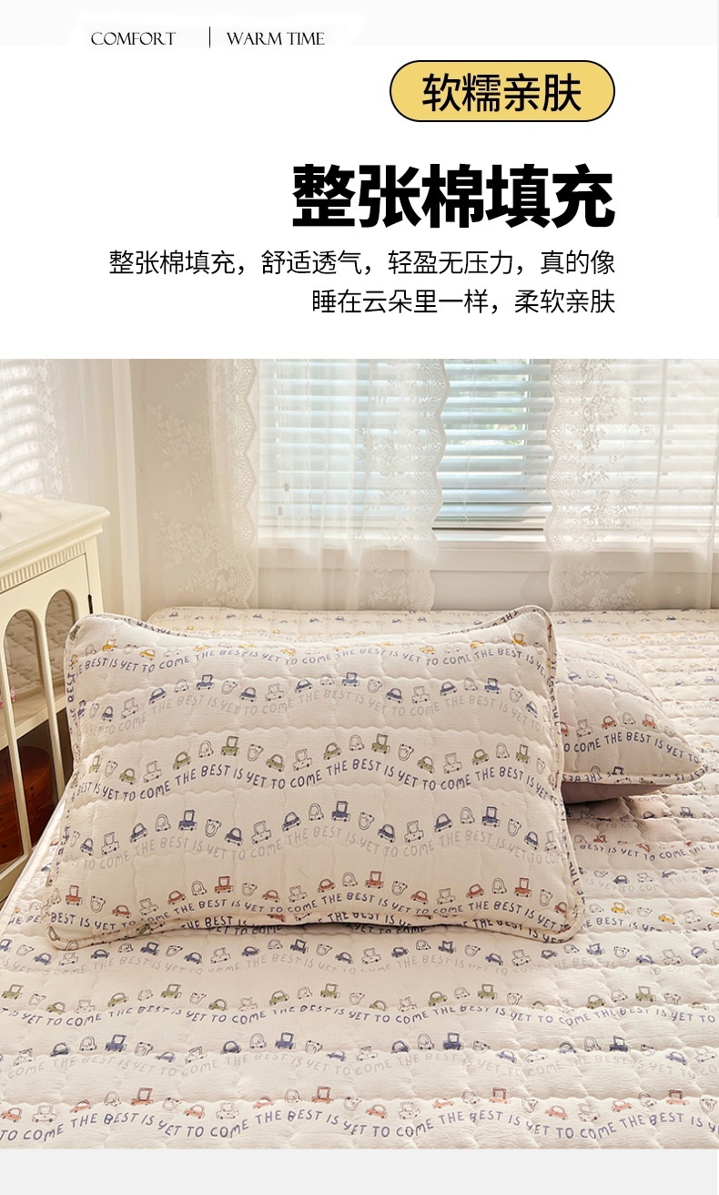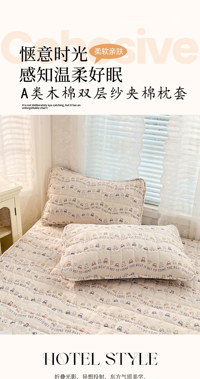 商品名称:圣比熊 2025新款云感双层纱夹棉枕套宿舍单人枕芯套一对装加厚枕头套 汽车世界