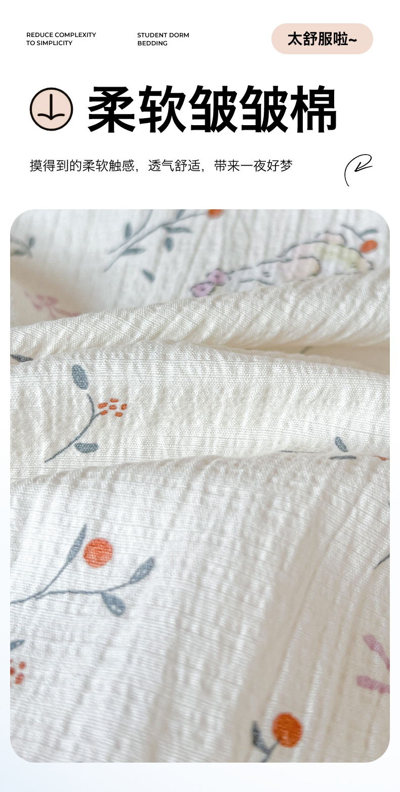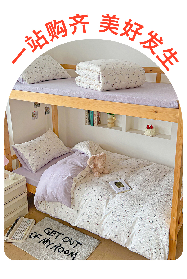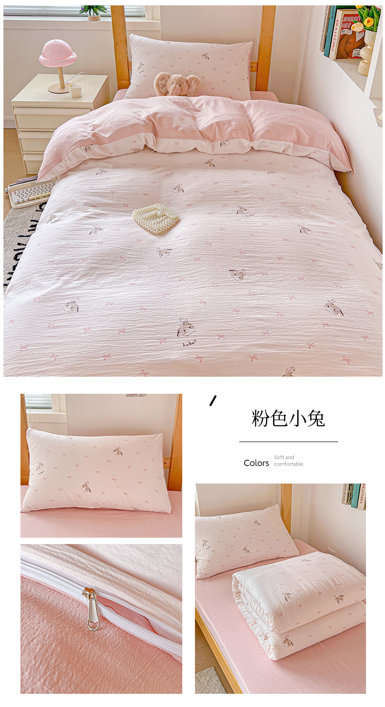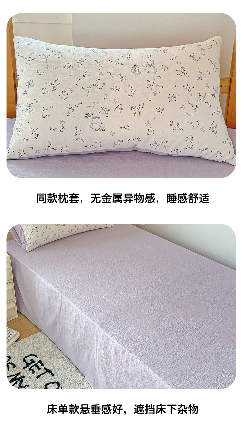 当前位置: 91家纺网 > 商品网购 > 床品套件 > 三件套 > 名兮家居 2025新款皱皱棉学生床宿舍上下铺三件套六件套 蜜芽兔