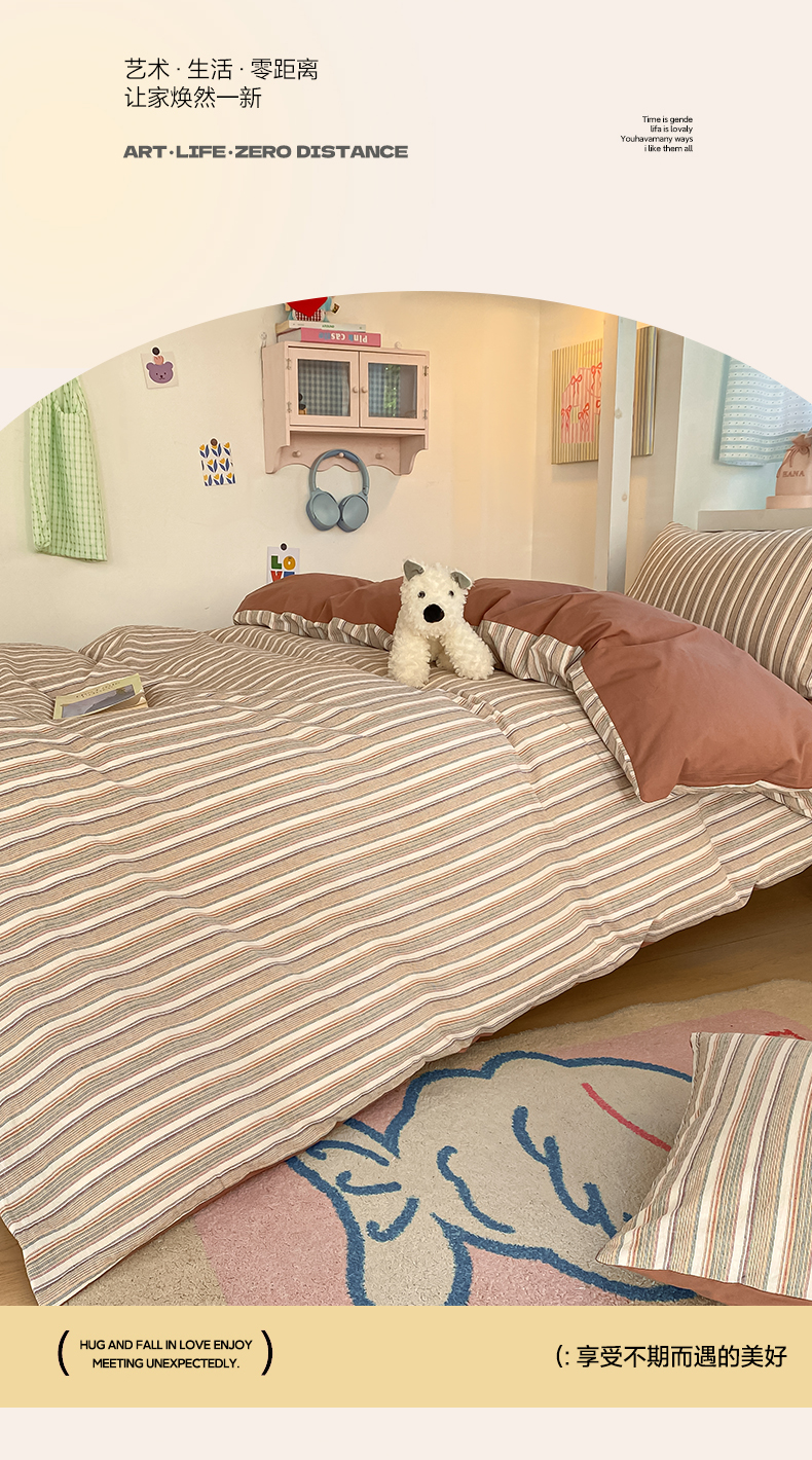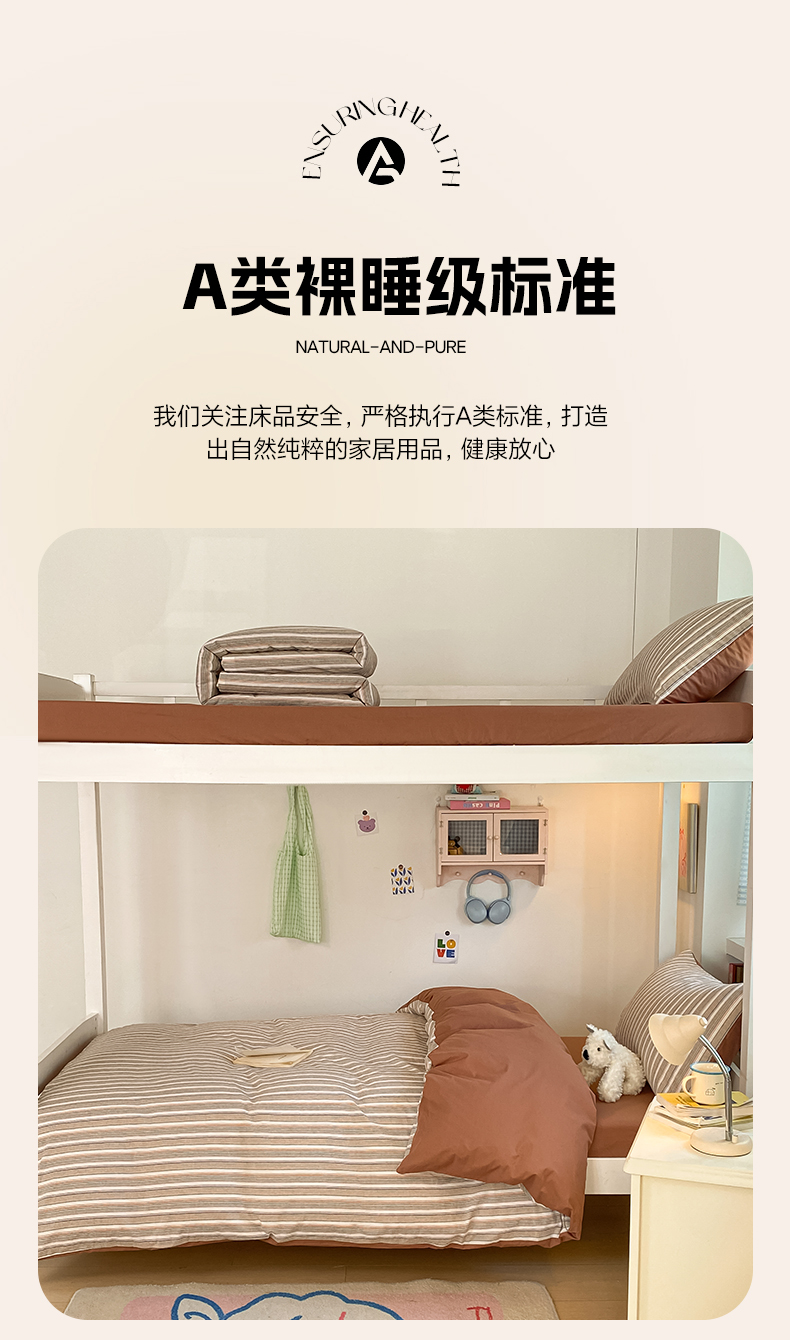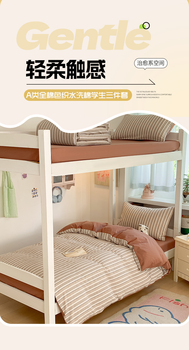 当前位置: 91家纺网 > 商品网购 > 床品套件 > 三件套 > 寐居家纺 2025新款亲肤舒适全棉纯棉色织水洗棉学生三件套 布丁-咖