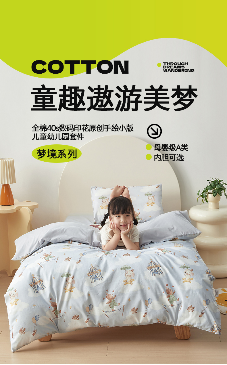 当前位置: 91家纺网 > 商品网购 > 床品套件 > 多件套 > 多件套 > 荷马之梦 2025新款梦境系列—全棉40s数码印花原创手绘小版儿童幼儿园套件 游园会