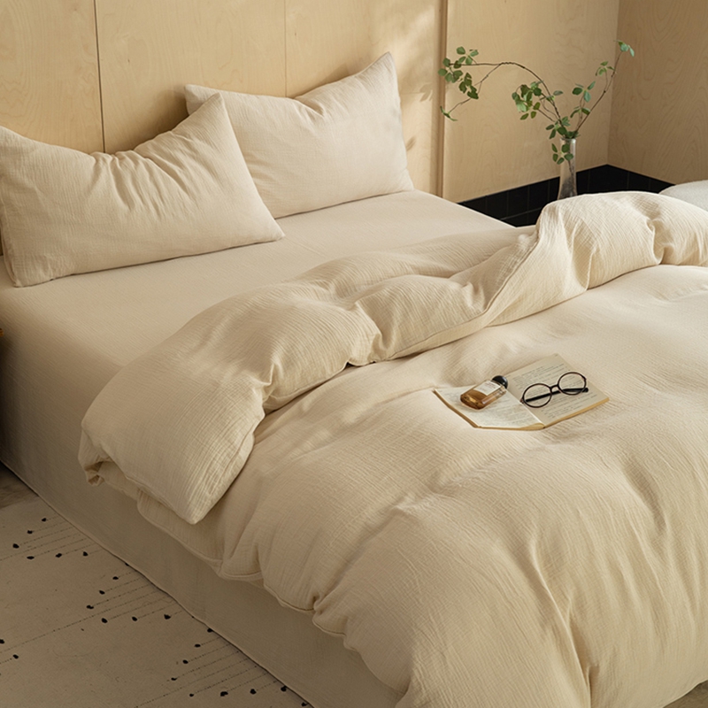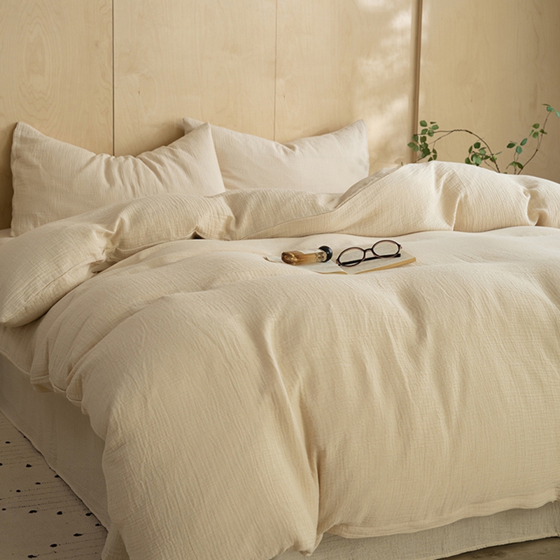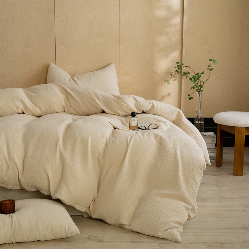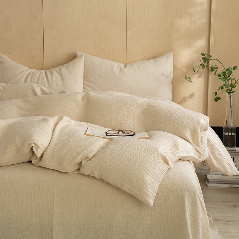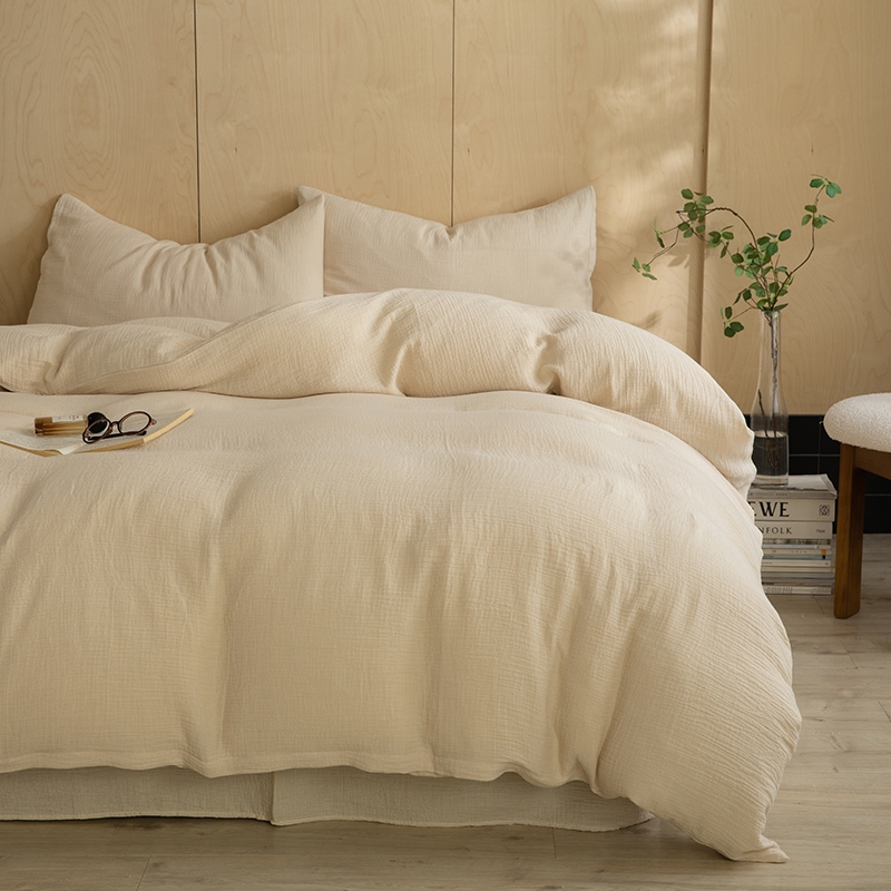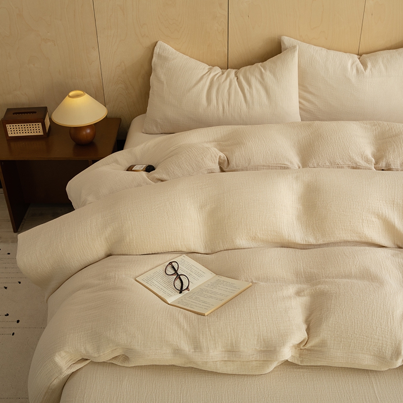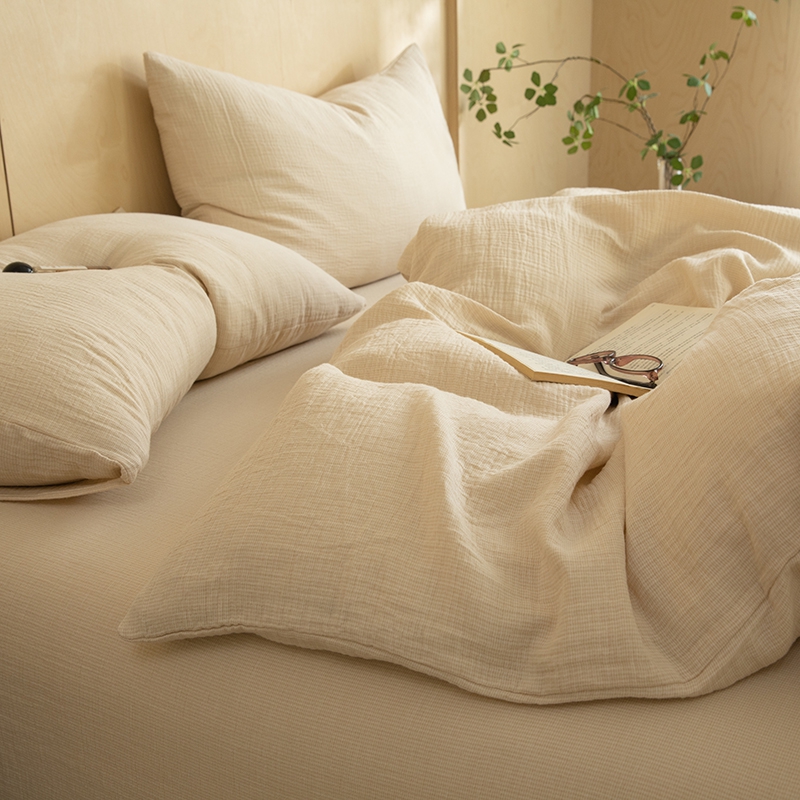 商品名称:棉小二 2025新款千鸟格全棉双层纱四件套 千鸟格-燕麦