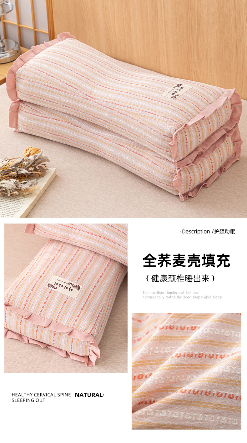 当前位置: 91家纺网 > 商品网购 > 枕头/枕芯/保健枕/颈椎枕 > 普通枕芯 > 织布人 2025新款荞麦枕全棉条纹花边护颈全荞麦壳枕头成人家用助眠硬枕芯 全棉条纹花边护颈枕-浅黄 50x20cm/只